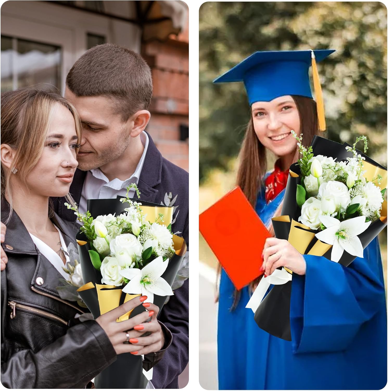 BEISHIDA 20Pcs Black and Gold Double Sided Floral Wrapping Paper Matte Waterproof Flower Bouquet Wrapping Paper for Floral Wrap Florist Packing Supplies Birthday Valentine's Christmas Gift Wrapping