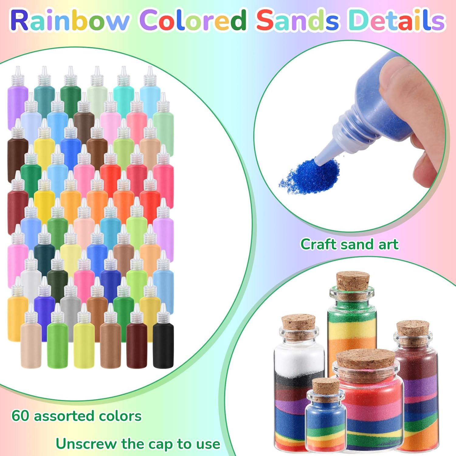 • 60 Vibrant Colors: this sand art kit offers a wide range of 60 different colors, 2 pcs of each color, 120 pcs in total, providing endless creative possibilities for adults alike