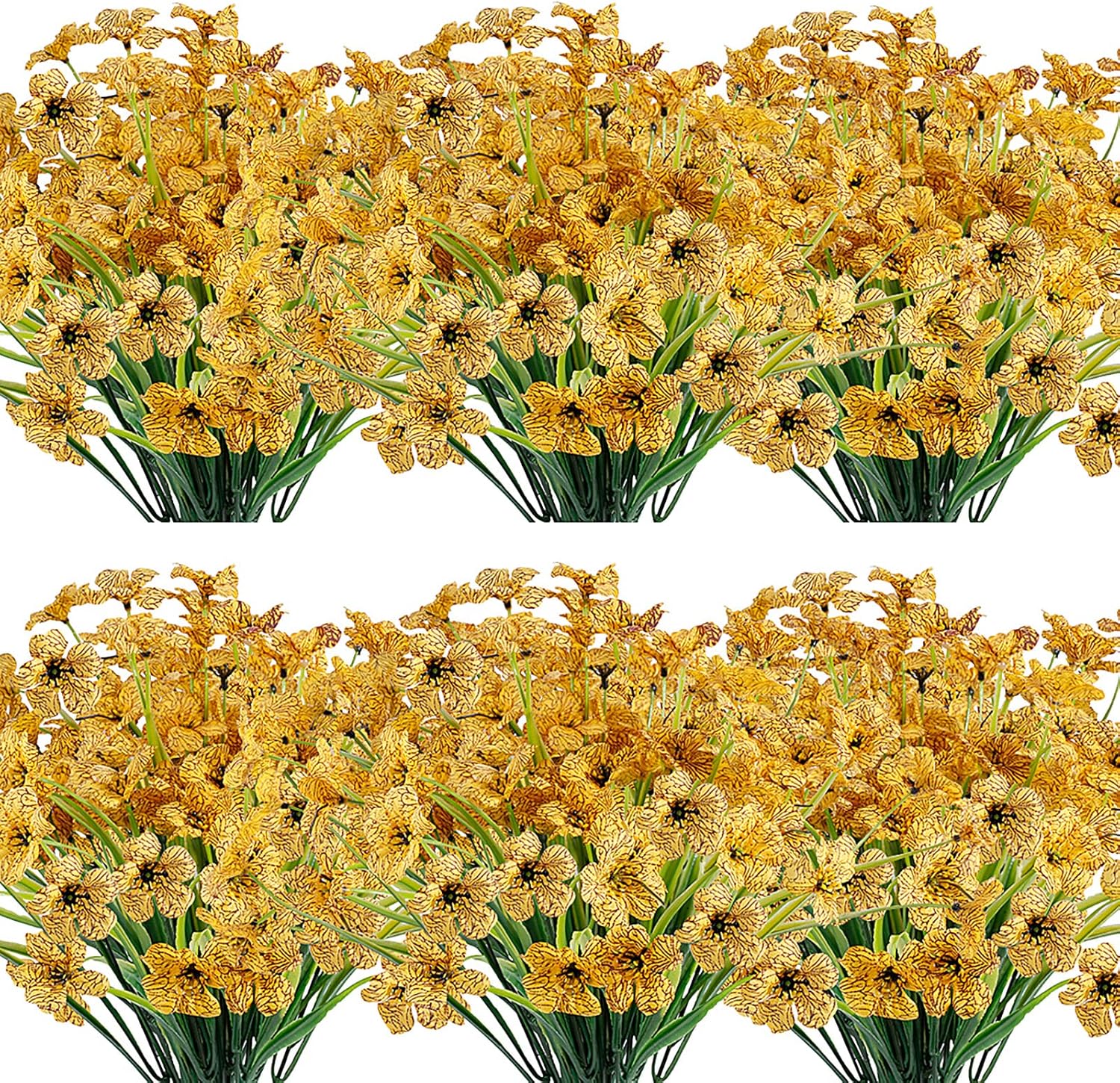 20 Bundles Artificial Flowers Outdoor UV Resistant Fake Flowers No Fade Faux Plastic Plants Garden Porch Window Box Decorating (Yellow)…