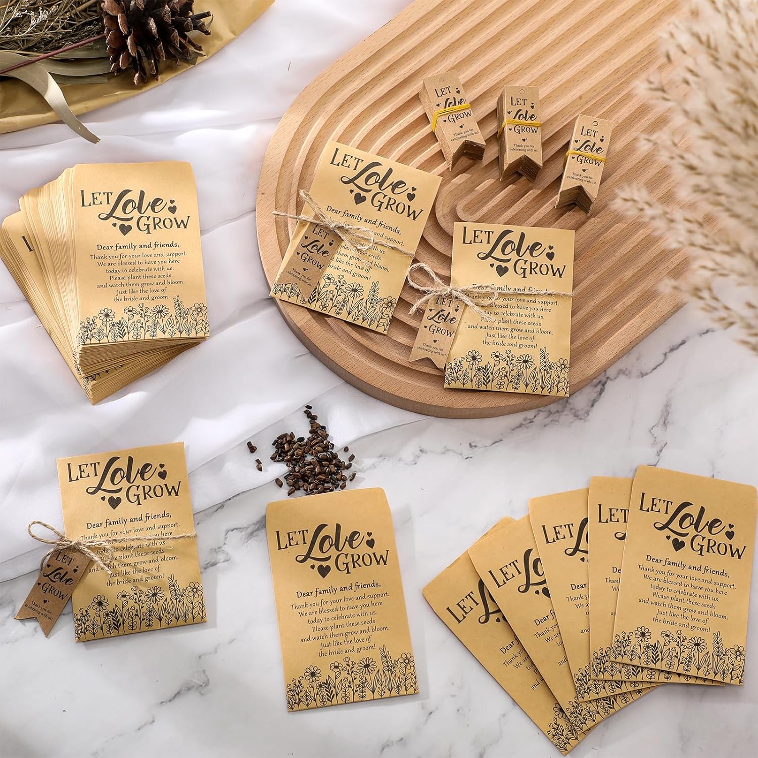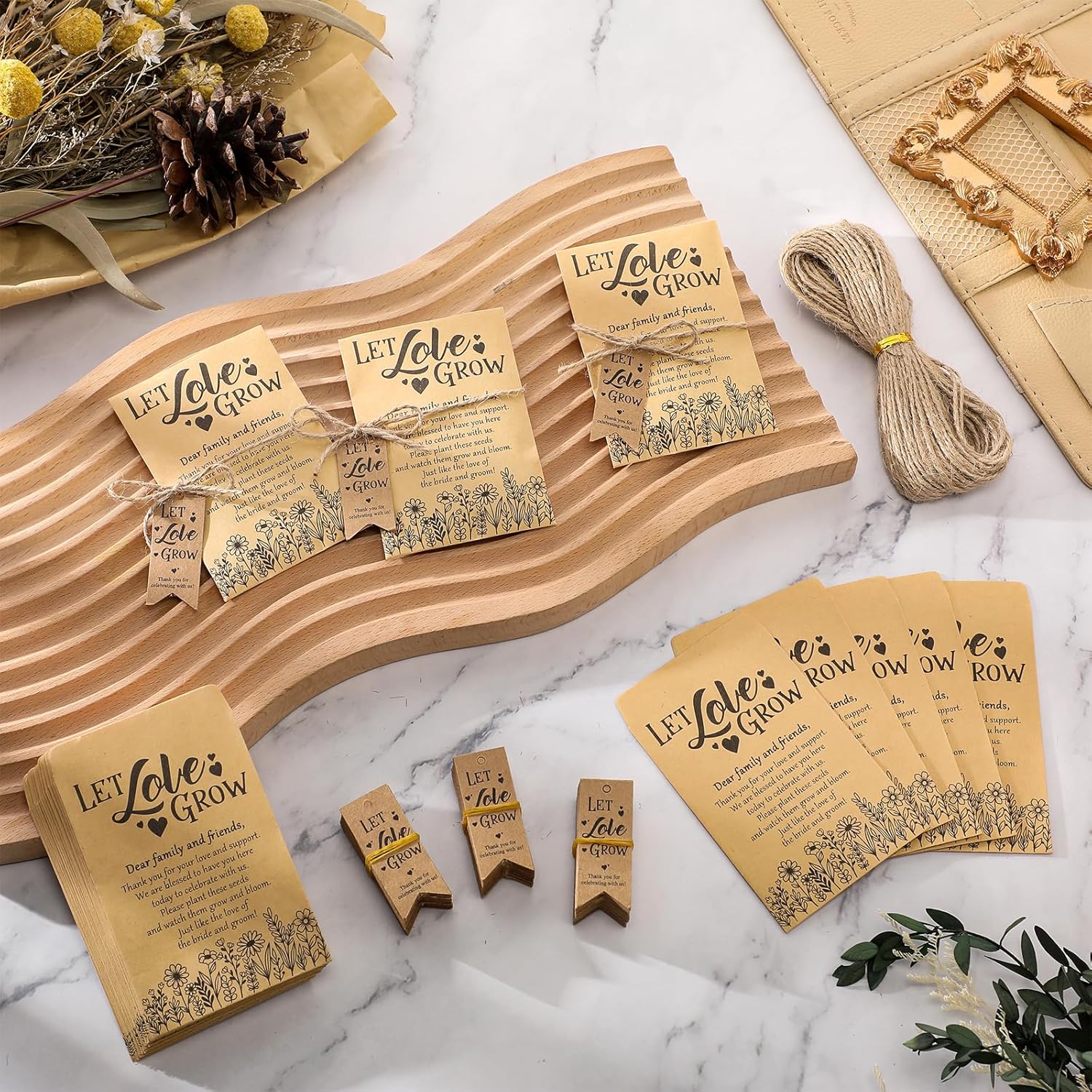 150 Sets Let Love Grow Wedding Favors for Guests Wedding Thank You Gifts Bulk Include Flower Seed Packets Tags and Hemp Ropes Craft Envelops for Bridal Shower Engagement Party Favors