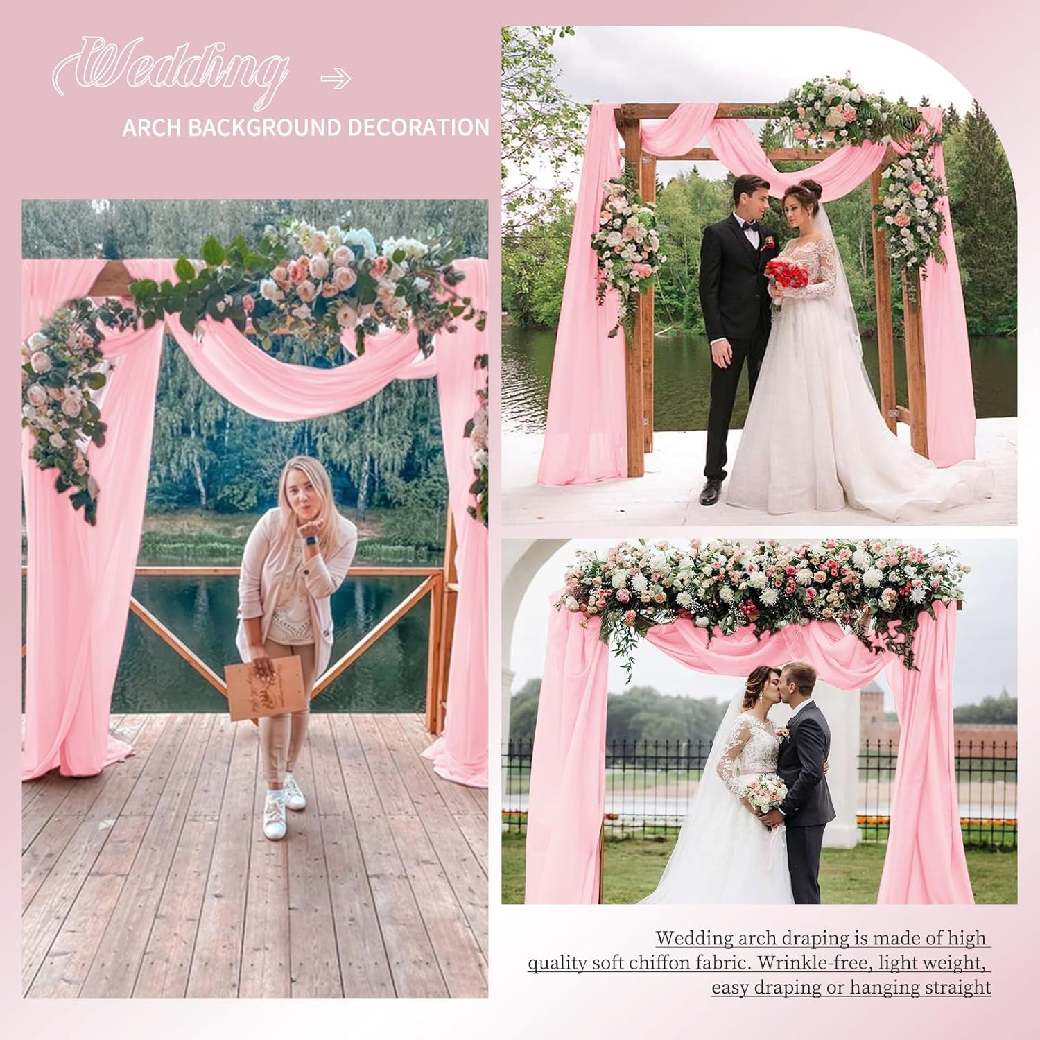 • 👑【Premium Wedding Arch Draping Fabric】This Pink chiffon drapery backdrop is made of high-quality chiffon material, with a soft and smooth touch without wrinkles. The high-quality workmanship makes all edges sewn beautifully and has good durability. Soft sheer drapes will help to create beautiful folds or leave it flowing loose onto the floor, Create a romantic scene easily.