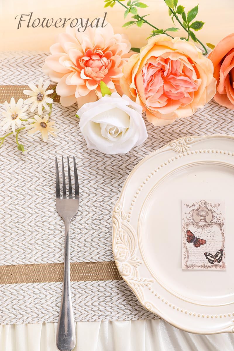 • โ™”GORGEOUS MIXTURE & UNIQUE DESIGN-Floweroyal artificial champagne flower set contains a beautiful variety of flowers, as well as some plastic stems to use for floral arrangements. The blossoms are made of silk flowers with plastic centers and greenery. Vibrant color and elegant touch make it more real. A varied mix of flower shapes and shades, which makes for a very attractive, nicely-toned arrangment. Go well with the florals you already have at home. Great for filling your living spaces.