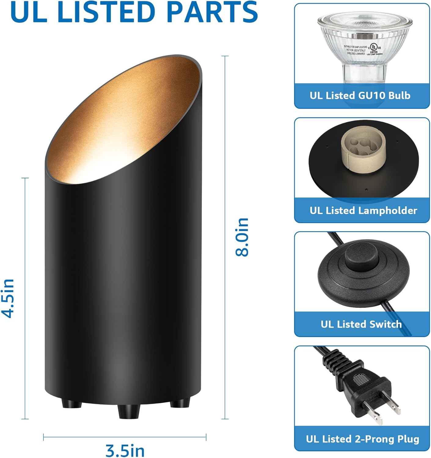 • RELIABLE & STYLISH FLOOR CAN LIGHT - All components are UL certified, including GU10 bulb, lamp holder, cable and switch, safe and durable. Black metal construction, 8" high × 3.5" wide beveled cylindrical shape give the uplights fashion and art, perfect for indoor accent lighting.