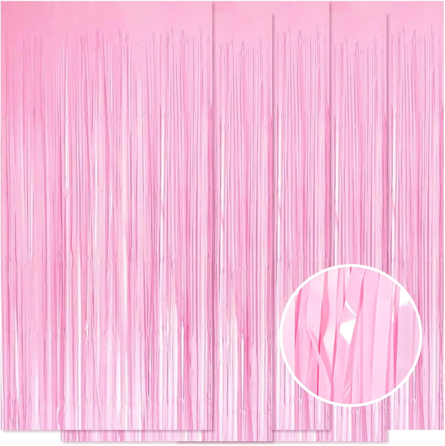 5 Pack Pink Foil Curtain Backdrop 3.2ft x 8.2ft Tinsel Foil Fringe Curtains Macaron Photo Booth Streamer Backdrop for Party Decorations Birthday Baby Shower Bachelorette Holiday Decor (Pastel Pink)