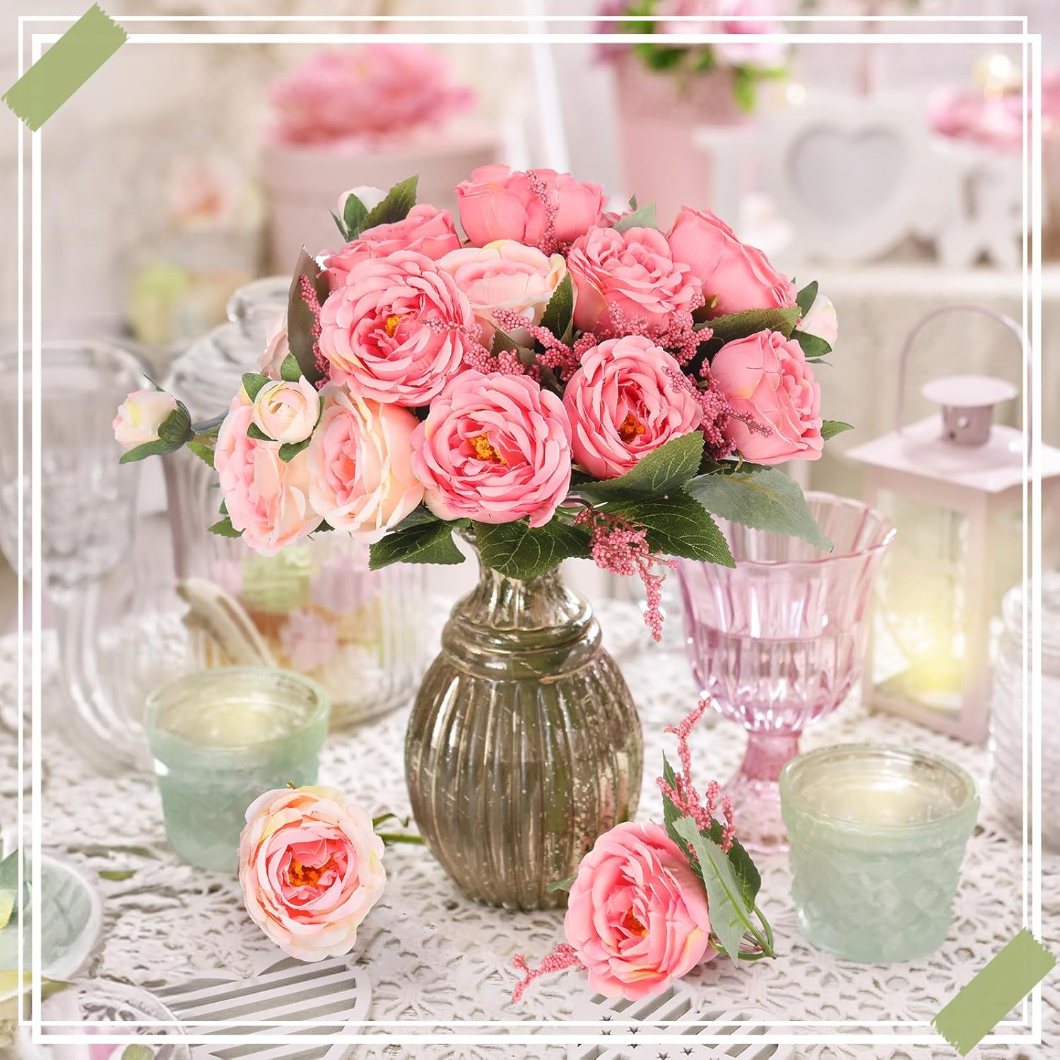 8 Bundles Artificial Peonies Flowers Boho Faux Flowers Arrangements Artificial Centerpiece Spring Bouquet Floral Wedding Decoration for Vase(Pink Color)