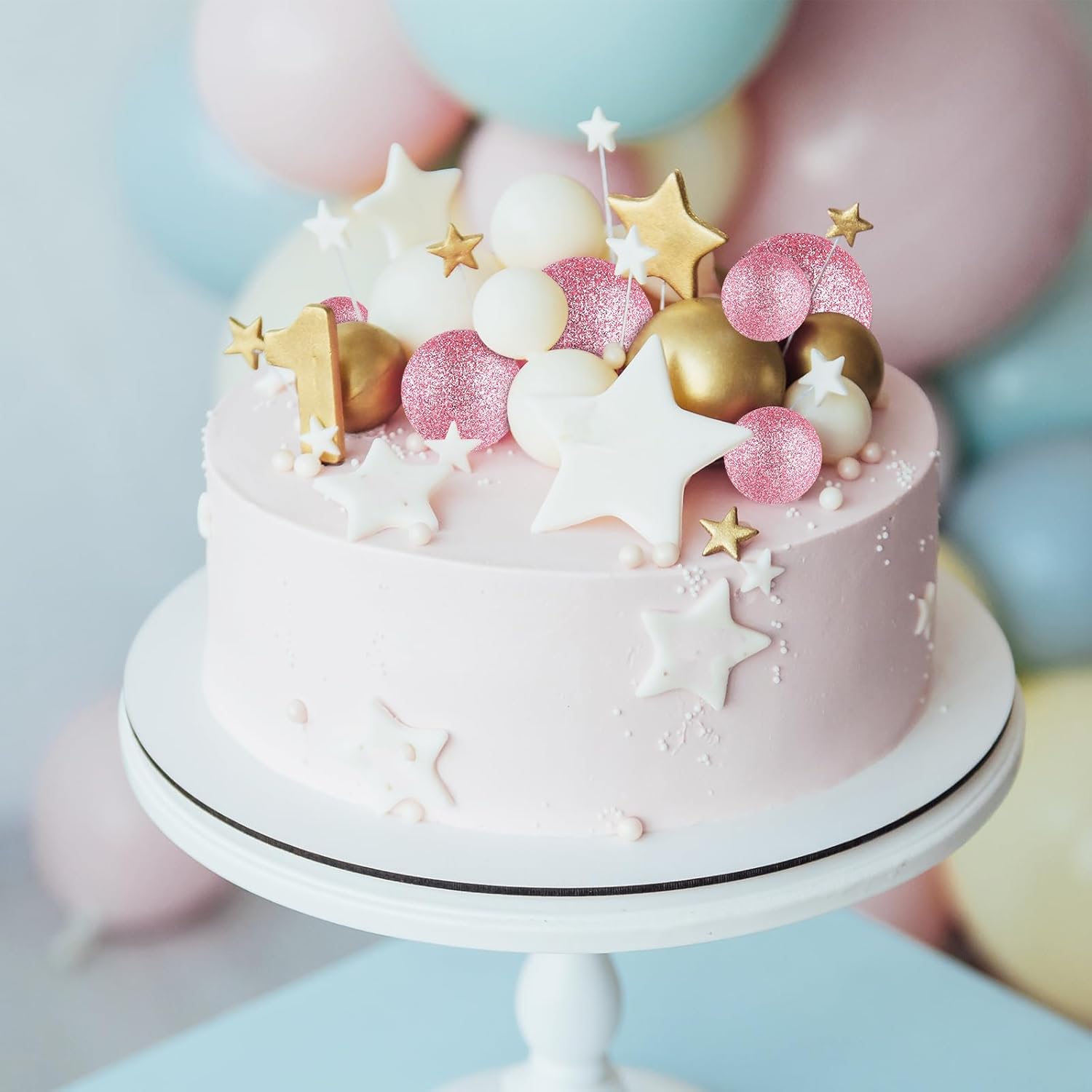 • Package includes: 20 pcs glitter pink ball cake decorations. The diameter of these ball cake toppers are 0.79 inch/ 2 cm, 0.98 inch/ 2.5 cm, 1.18 inches/ 3 cm, 1.57 inches/ 4 cm, 5 pieces of each size.