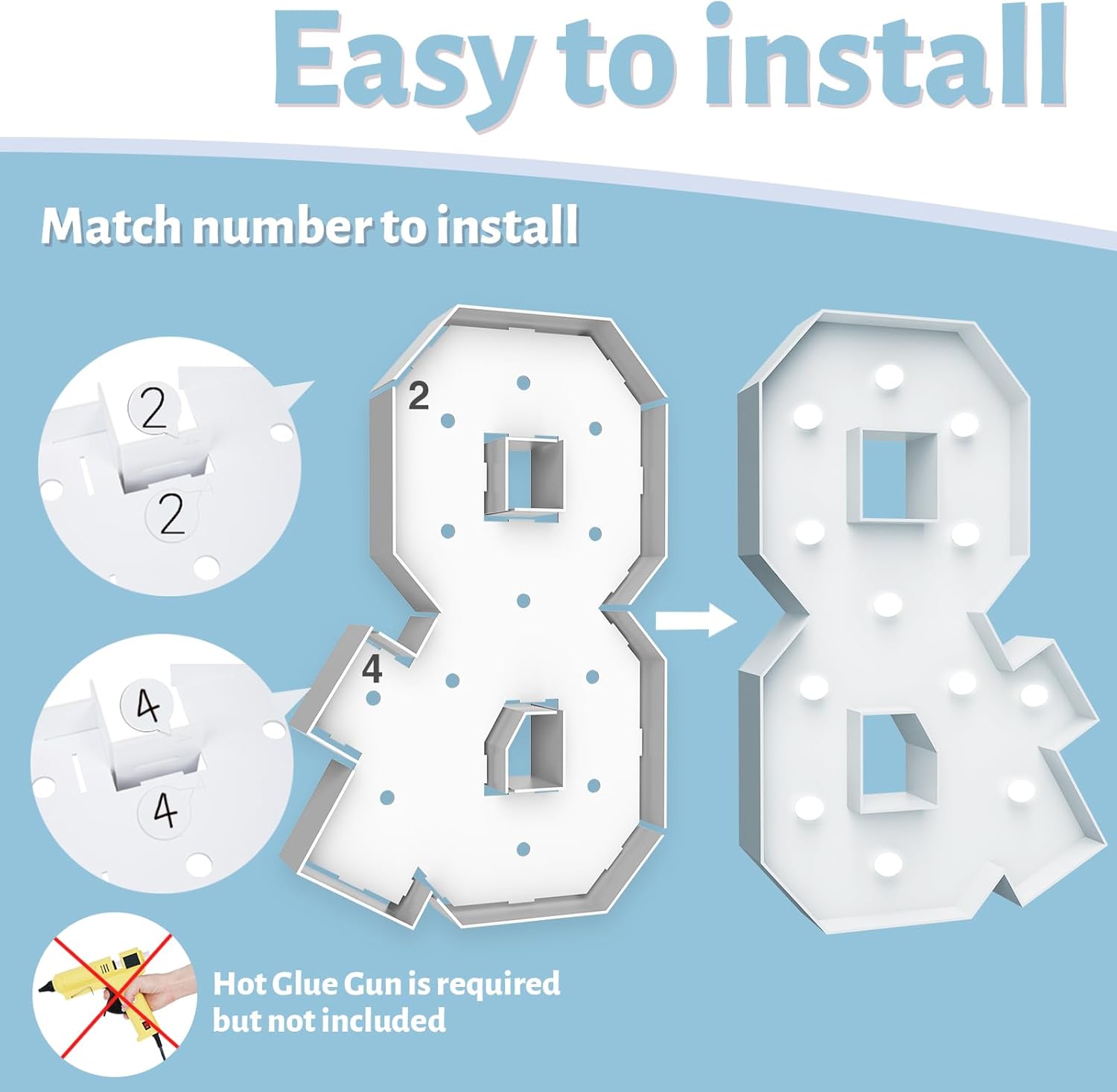 • ASSEMBLY REQUIRED: Marquee Light Up Letters consists of pre-cut frames with slots, the numerical markings in the mounting sequence will easily guide you through the matching, which requires a hot glue gun to bond and screw in the bulbs. Finish 4 feet tall checkbox letters (Note: Glue gun and batteries are not included)