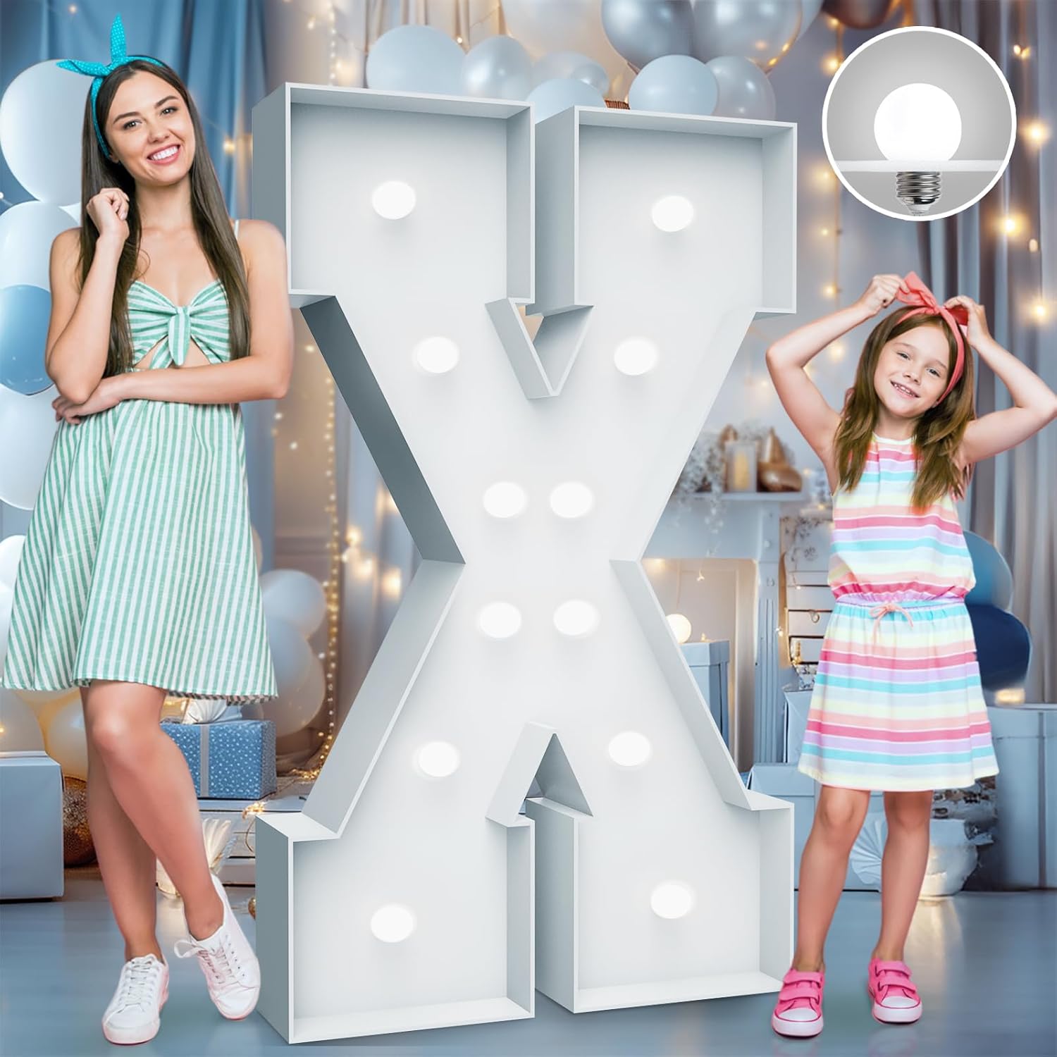 4FT Marquee Light Up Letters - Cool White Light Up Letters X with Fixed Water Bag, Party Decoration Large Marquee Light Up Letters can Be Used for Wedding Decoration, Birthday Party Decoration
