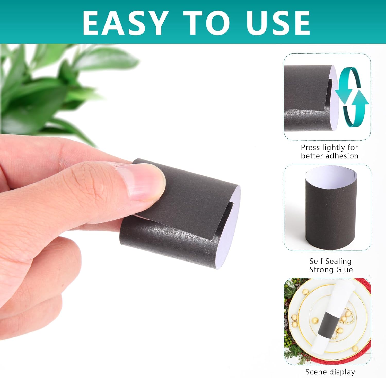 • Napkin bands self adhesive,not easy to fall apart or warp,no need to use additional glue
