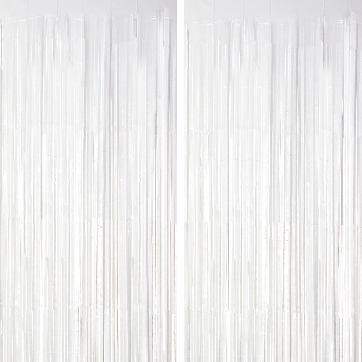 2 Pack White Tinsel Foil Fringe Curtains, White Party Decorations, Metallic Tinsel Party Streamers Backdrop for Birthday Baby Shower Graduation Wedding Anniversary Party Decorations