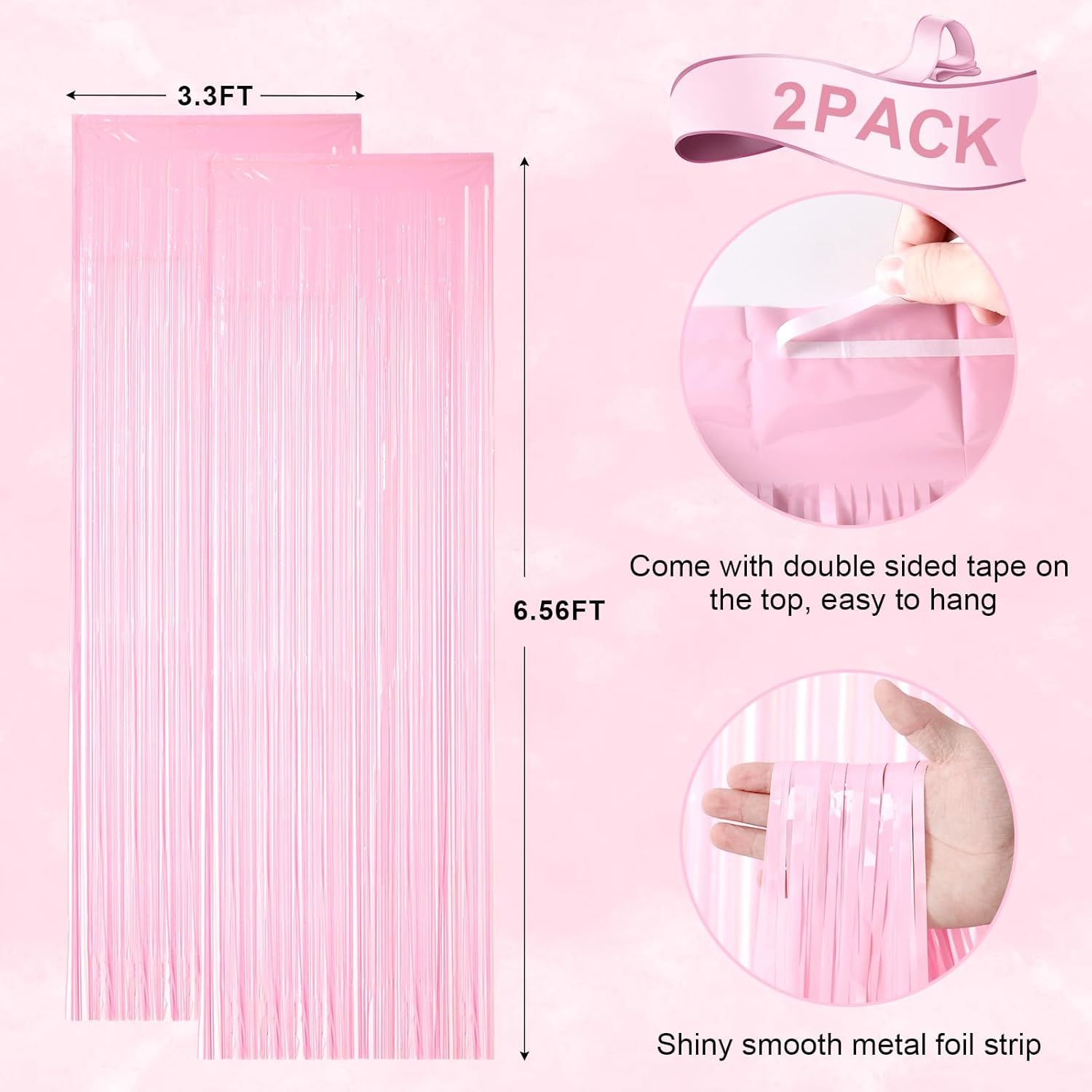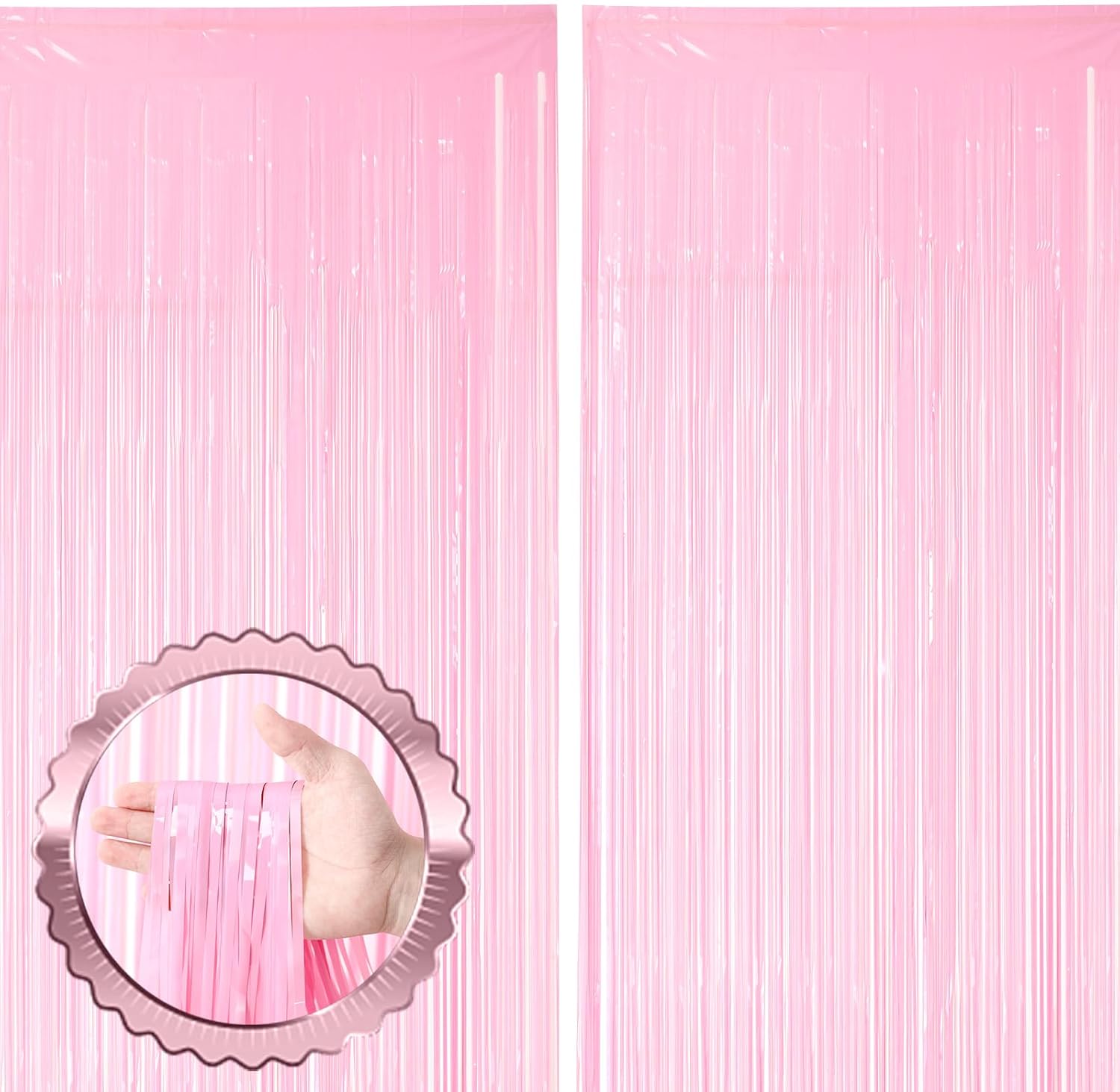 2 Pack Pastel Pink Tinsel Foil Fringe Curtains, Pink Party Decorations, Metallic Tinsel Party Streamers Backdrop for Birthday Baby Shower Graduation Wedding Gender Reveal Party Decorations