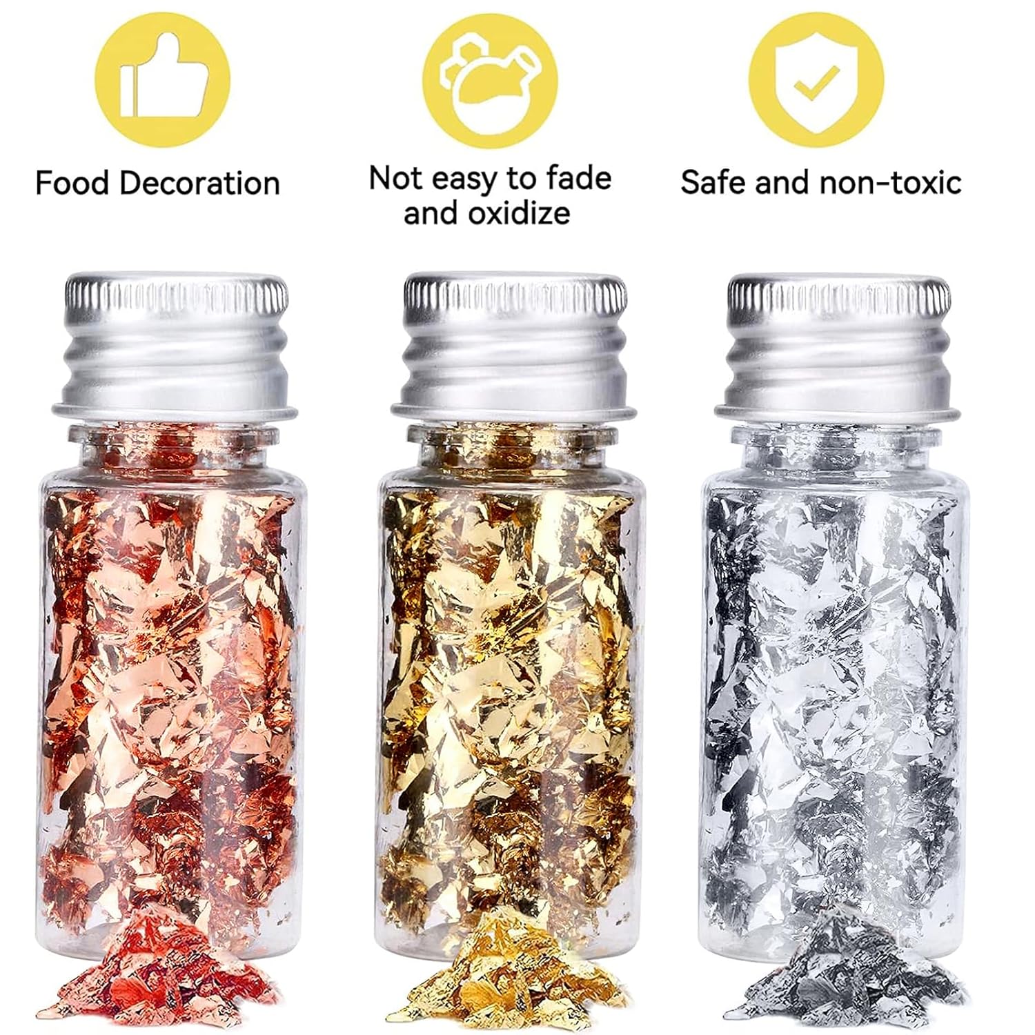 • 【Safe to Use Gold Leaf】 Bottled gold foil paper made of high-quality materials, safe and non-toxic, can be used at ease. The gold foil flakes to make your crafts look special.