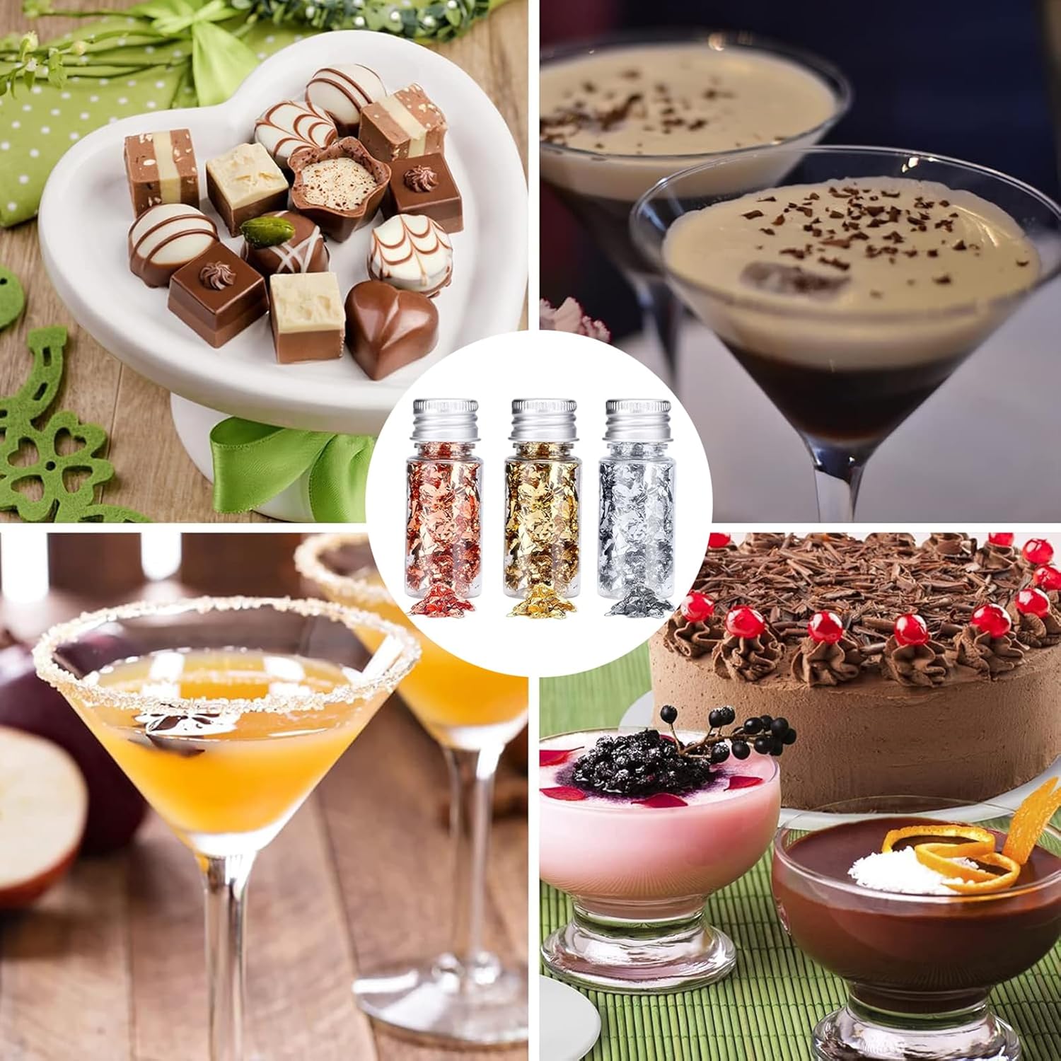 Edible Gold Leaf, Gold Leaf Cake Decoration Gold Flakes Food Gold Foil Decoration Baking Gold Foil Decor Chocolates Decor Gold Leaf Sheets for Cooking Dessert Decoration Crafts Makeup (Gold Silver Rose Gold)