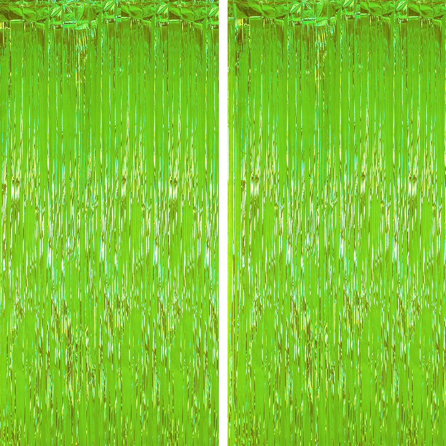 2 Pack Green Iridescent Tinsel Foil Fringe Curtains, Neon Party Decorations, Metallic Tinsel Party Streamers Backdrop for Birthday Baby Shower Halloween Wedding Party Decorations