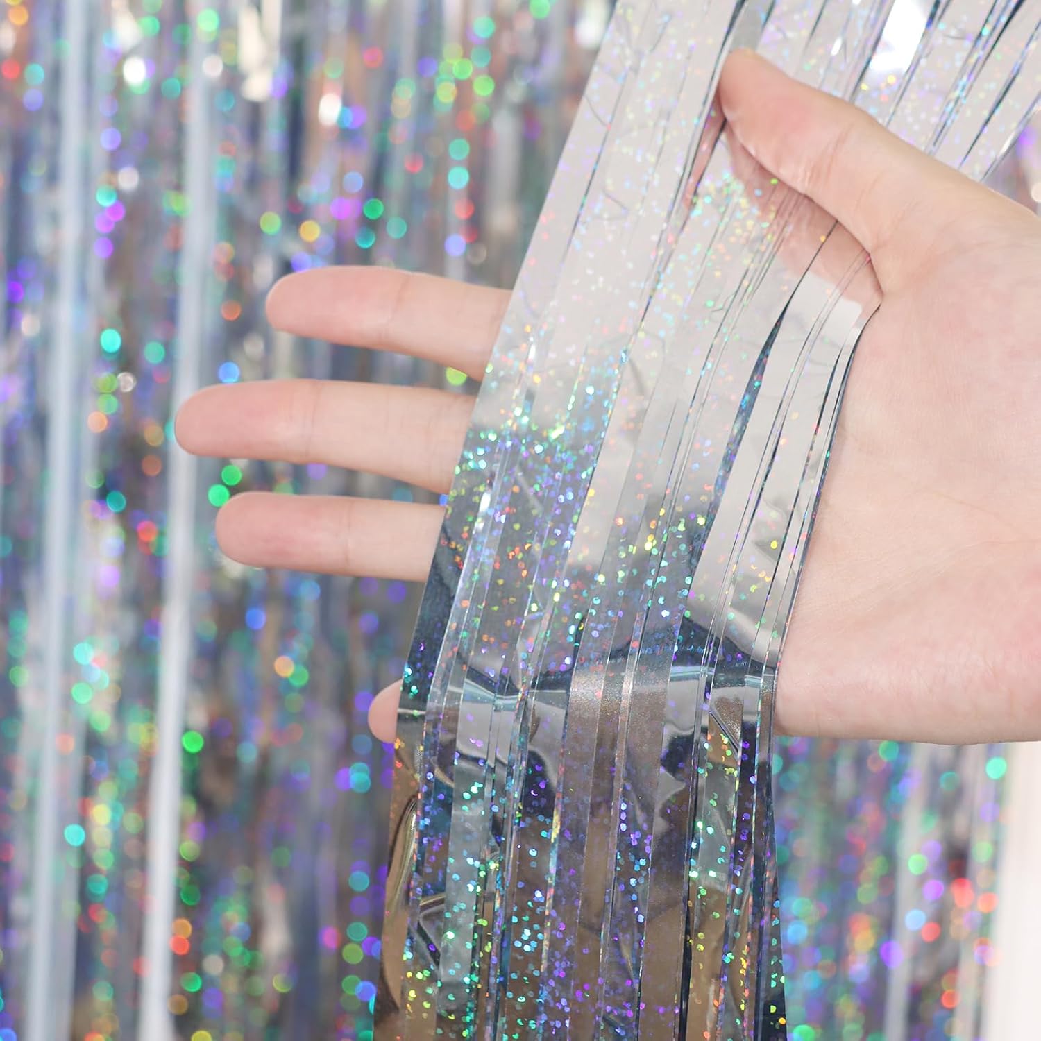 • Eye-Catching Design: These silver foil fringe tinsel backdrops boast vibrant colors and a shimmering effect that reflects light beautifully. Your friends will be mesmerized by the captivating atmosphere these curtains create