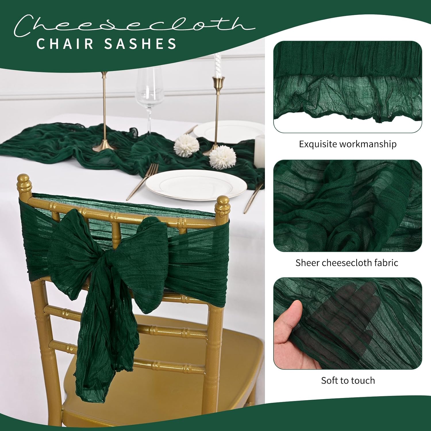 • 【Delicate Craftsmanship】Emerald Green cheesecloth chair sashes adopt unique pleated workmanship, and the overall appearance is simple and elegant, creating an elegant and romantic atmosphere easily. The edges are carefully stitched to keep a perfect flowing condition, will not get broken or loose easily, can serve you for a long time