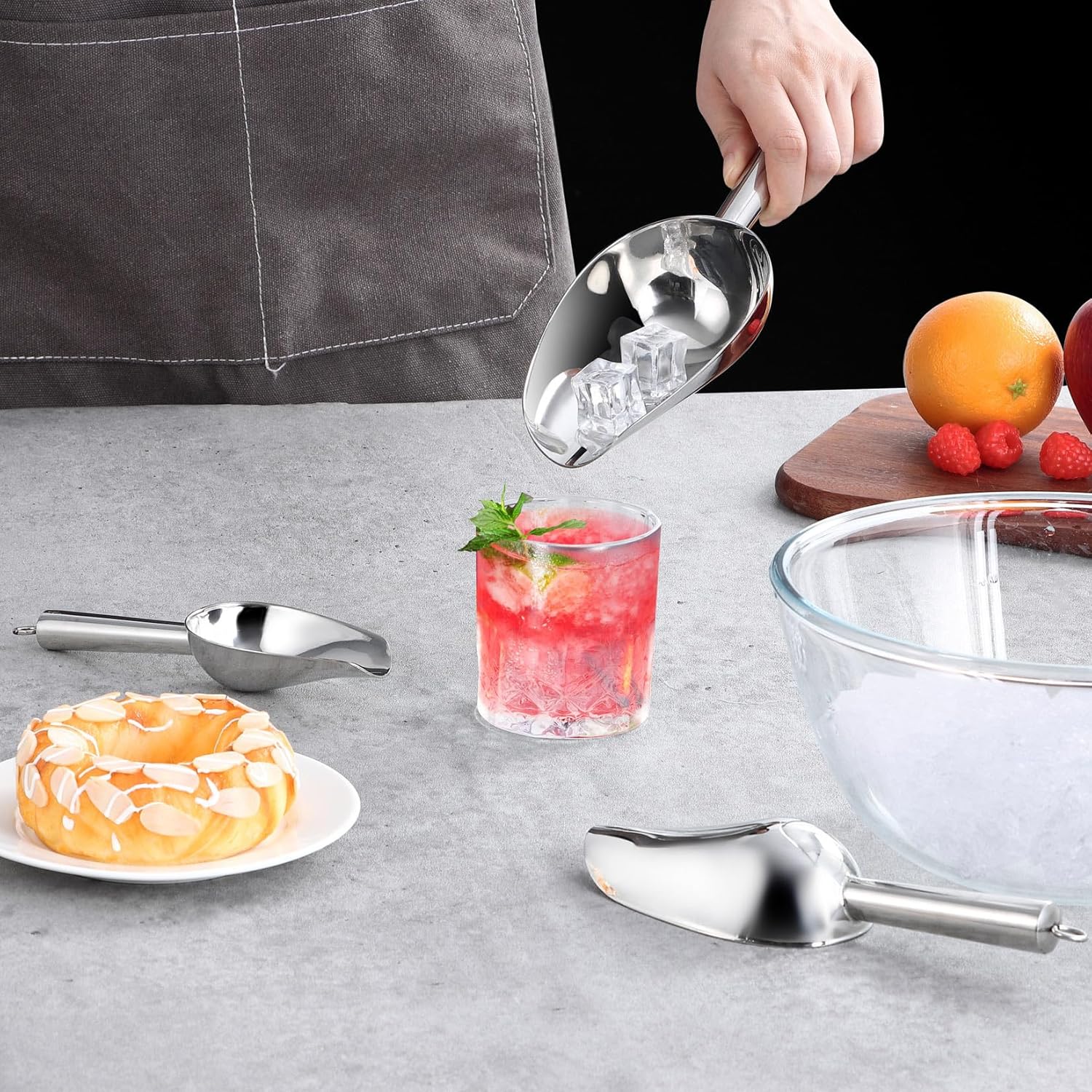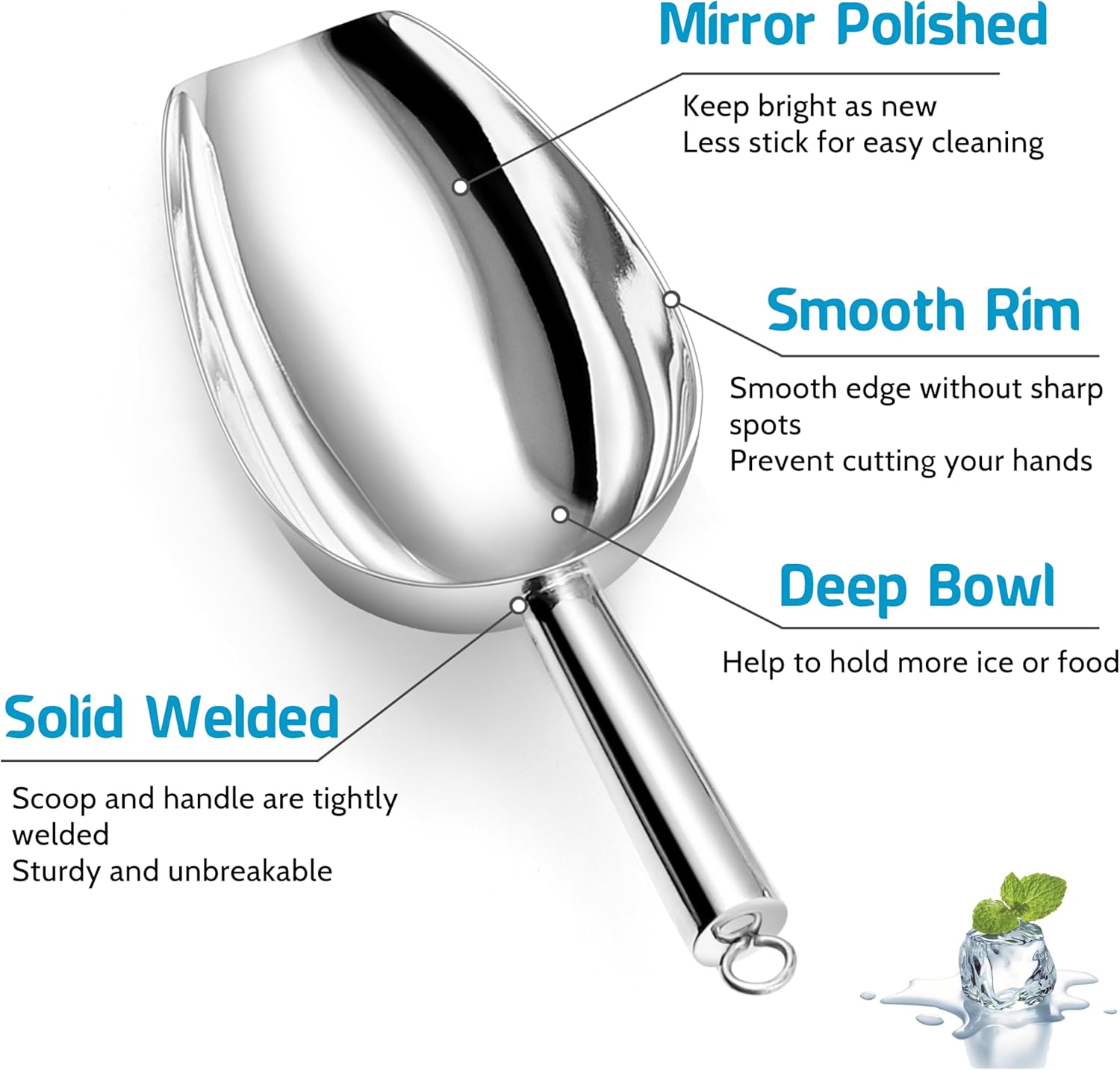 • 【Easy to Clean】Stainless steel ice scoop is polished with mirror finish, Easy to clean by hands, Can easy rinsing under the running water, Or use sponge to wash them in the soapy water, Our candy scoops always keep shiny surface after washing, Dishwasher safe to save your time and effort