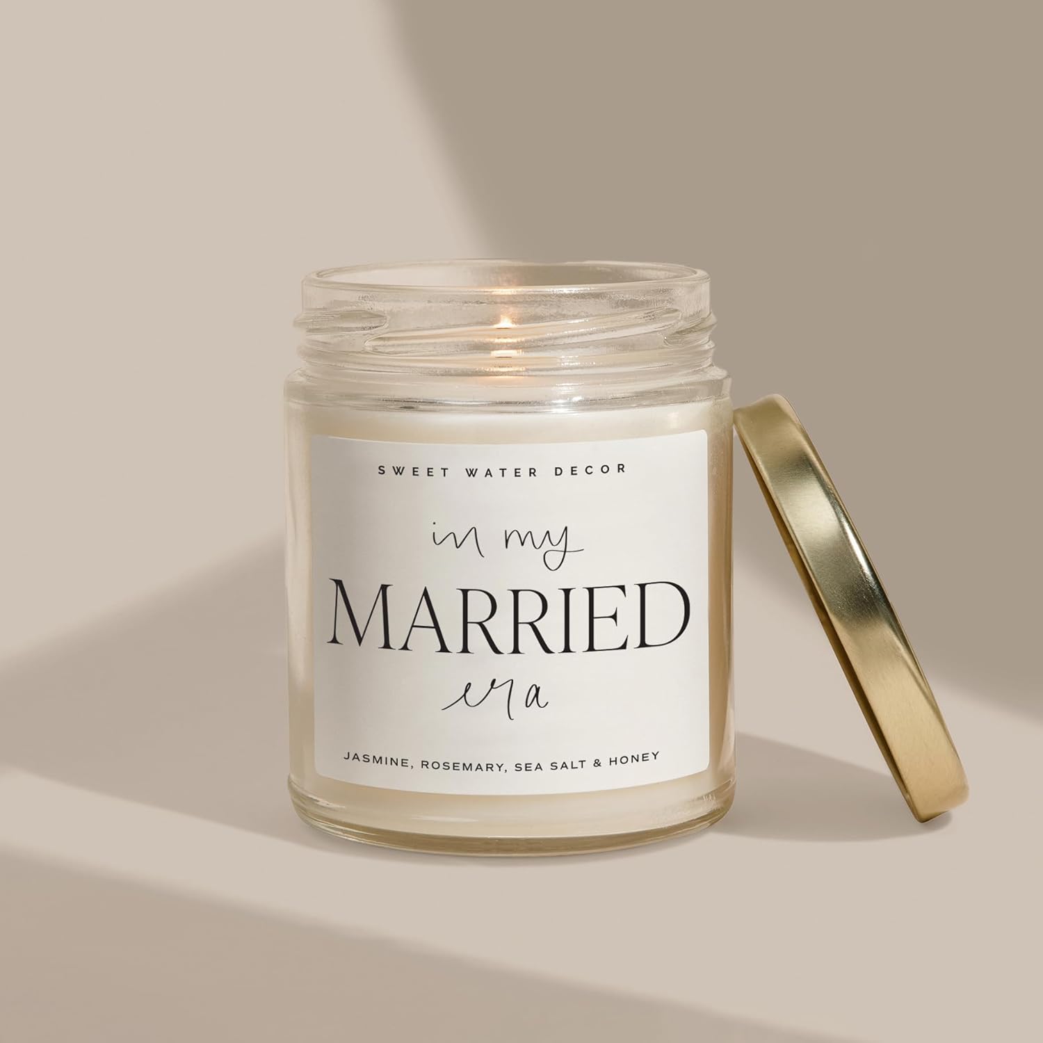Sweet Water Decor Married Scented Candles - Soy Candle in Jasmine Rosemary Sea Salt & Honey Scent - 100% Cotton Wick In My Married Era Wedding Candle with 40 Hours Burn Time - Just Married Candle 9oz