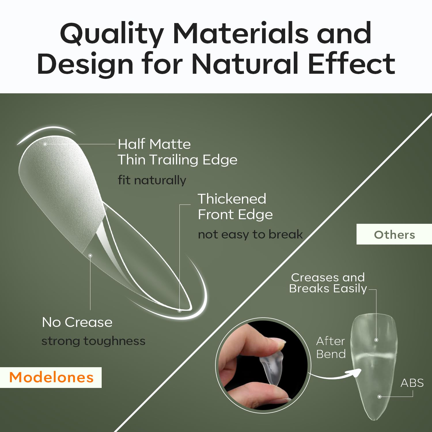 • Upgraded Half Matte Long Stiletto Nail Tips: You can easily extend your nails and enjoy the fun of DIY manicure with Modelones pre-buff gel nail tips! Half-matte texture design for increased friction and increases adhesion