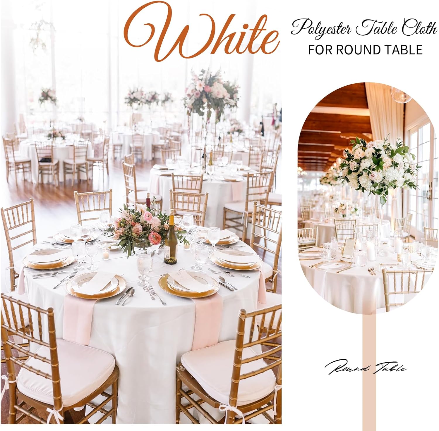 12 Pack 108 Inch Round Tablecloth, White Polyester Fabric Table Cloth for Round Table, Stain and Wrinkle Washable TableCover for Wedding Party Dining TableBuffet Restaurant Banquet and Camping