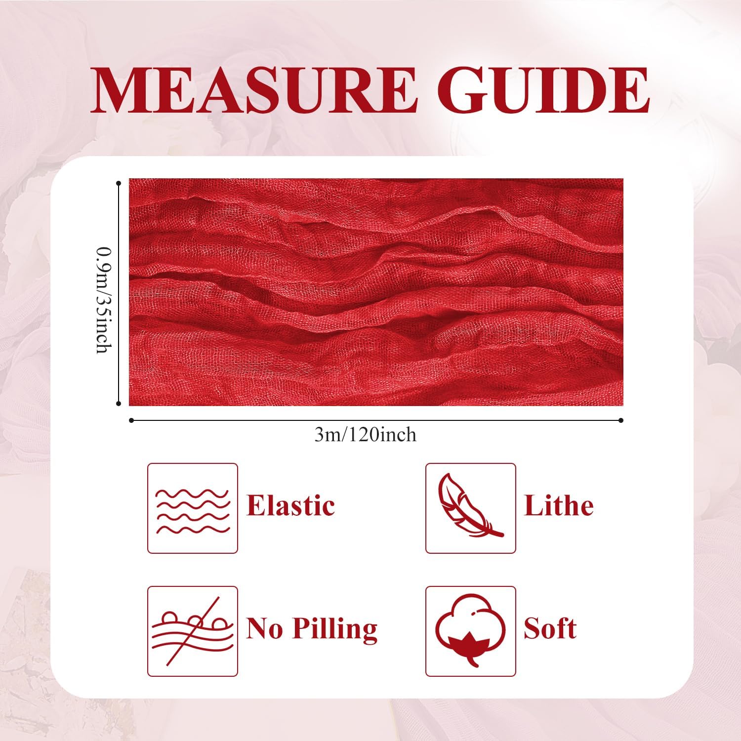 Asee'm 4PCS Fall Table Runner Cheesecloth 10FT Red Boho Gauze Fabric Rustic Sheer Cheese Cloth Runners for Thanksgiving Christmas Wedding Bridal Shower Party