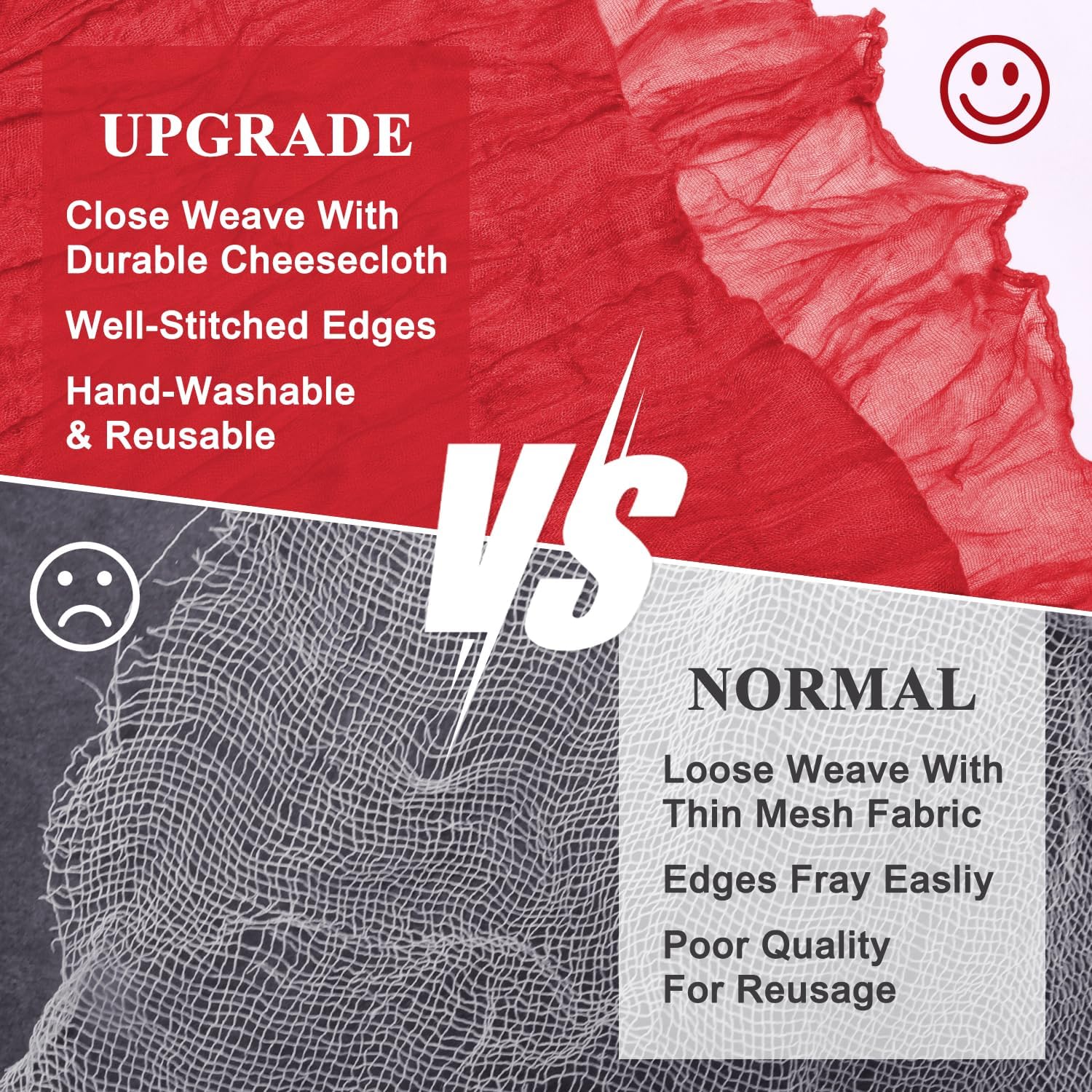 • 【Cheesecloth Table Runner】 Size: 35" W x 120" L. You will get 4 pieces 10FT length cheesecloth table runner. The sheer rustic table runner is long enough to span a large table and drape gracefully across the table. It will gently sway in the wind, adding a romantic atmosphere to your occasion. These eye-catching gauze table runners are ideal for arranging an elegant, stylish tablescape.