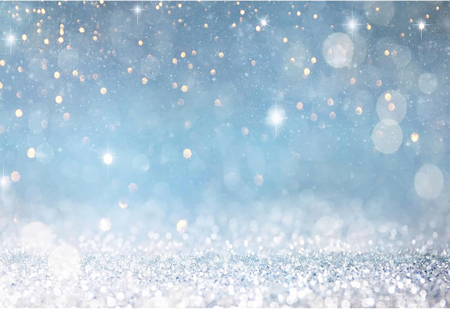 9x6ft Blue Bokeh (Not Glitter) Backdrops Birthday Party Abstract Golden Sparkling Spots Photography Background Baby Shower Wedding Prom Graduation Party Bokeh Decor Banner Photoshoot Props