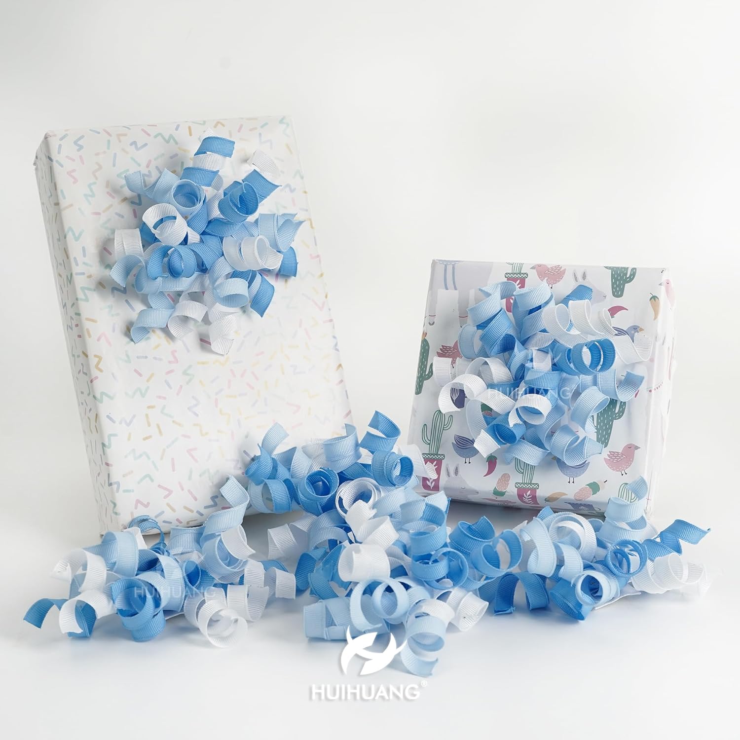 • SIZE & PACK: Each package contains 6 pcs mixed color blue and white curly bows are made of 12 strands of 3/8"(9mm) wide grosgrain ribbon that measure about 4.5~5" x 4.5~5"