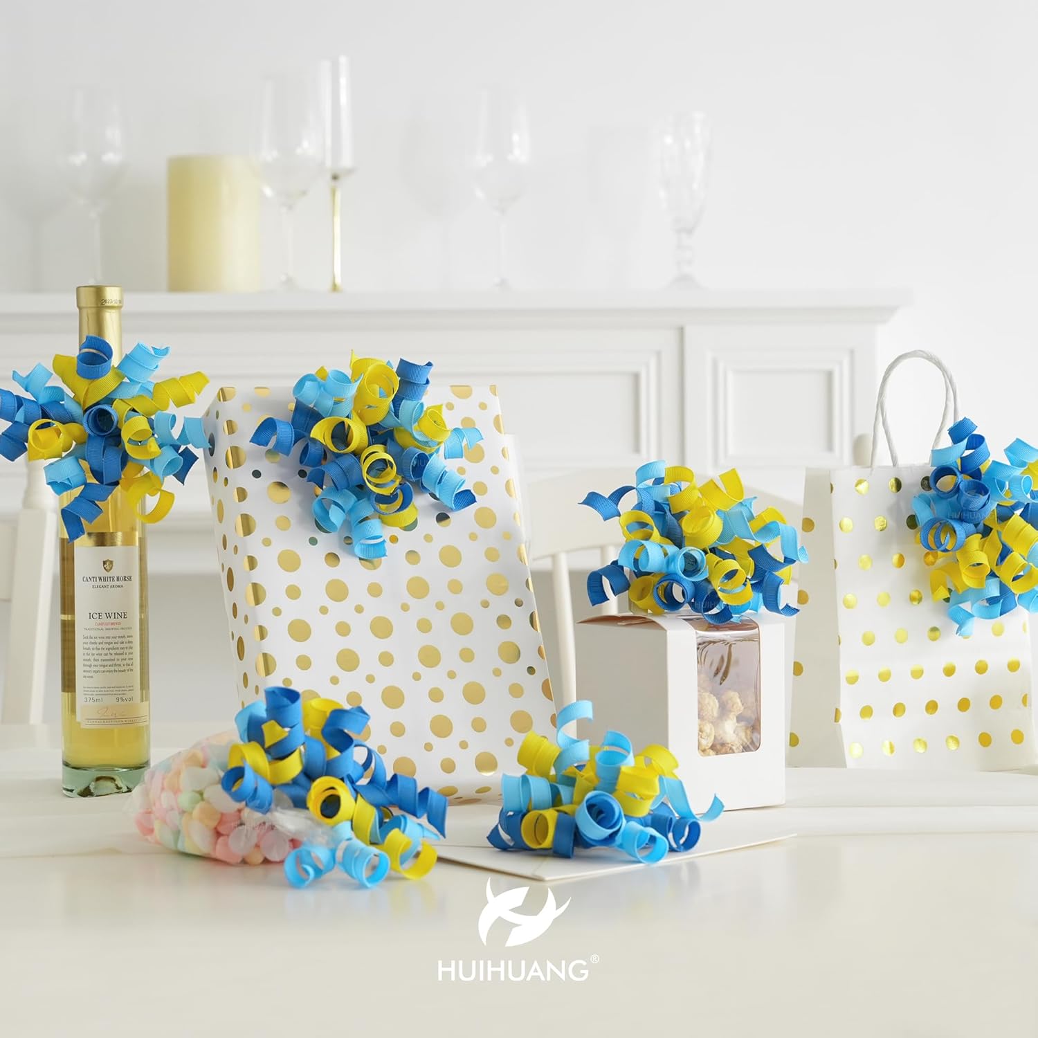 • WIDE APPLICATIONS: Curly ribbon bows is the perfect finishing touch to any gift packaging, you can create a fancy package easily, enhance the look of party favor bags or boxes at events like weddings, birthdays, and baby showers, or holiday ornaments, wine bottles, favors bags