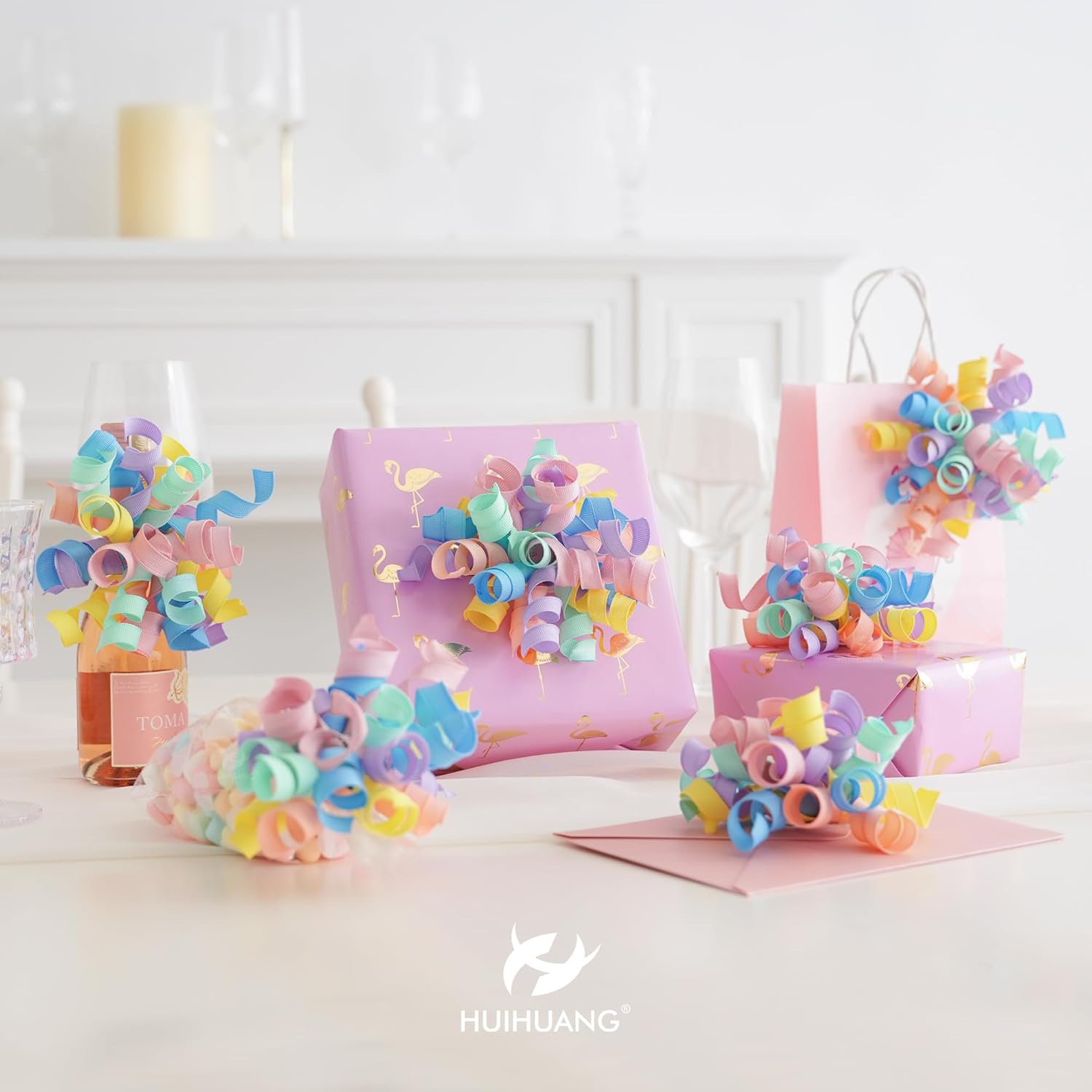 HUIHUANG Pastel Curly Ribbon Bows Pastel Bows for Gift Wrapping, Self Adhesive Burst Gift Bow for Presents, Birthday, Holiday Party Favors, Wine Bottle, Treat Bags- 6 Counts
