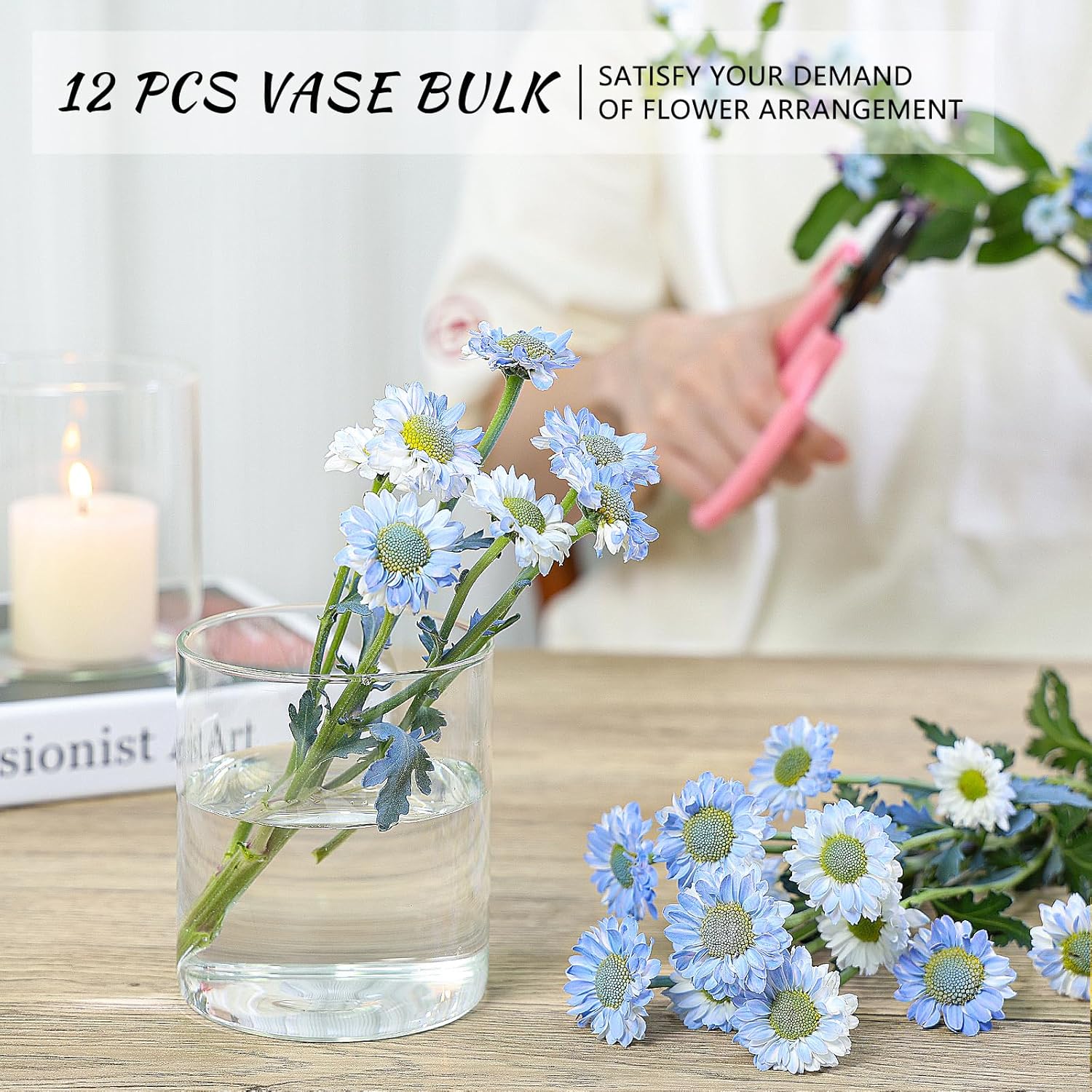 12Pcs Glass Cylinder Vase for Centerpieces 5 Inch Clear Flower Vases Bulk, Glass Hurricane Candle Holder Small Floral Vases for Table, Floating Candle Vase for Wedding Home Décor