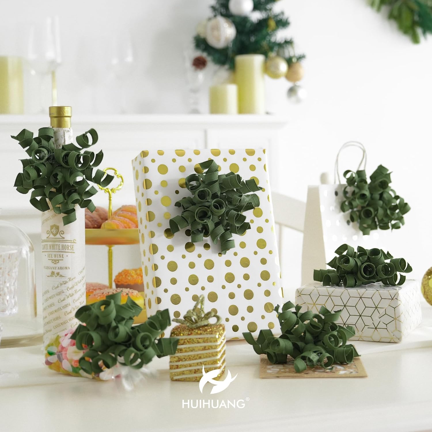 • SIZE & PACK: Each package contains 6 pcs moss green curly bows are made of 12 strands of 3/8"(9mm) wide grosgrain ribbon that measure about 4.5~5" x 4.5~5"