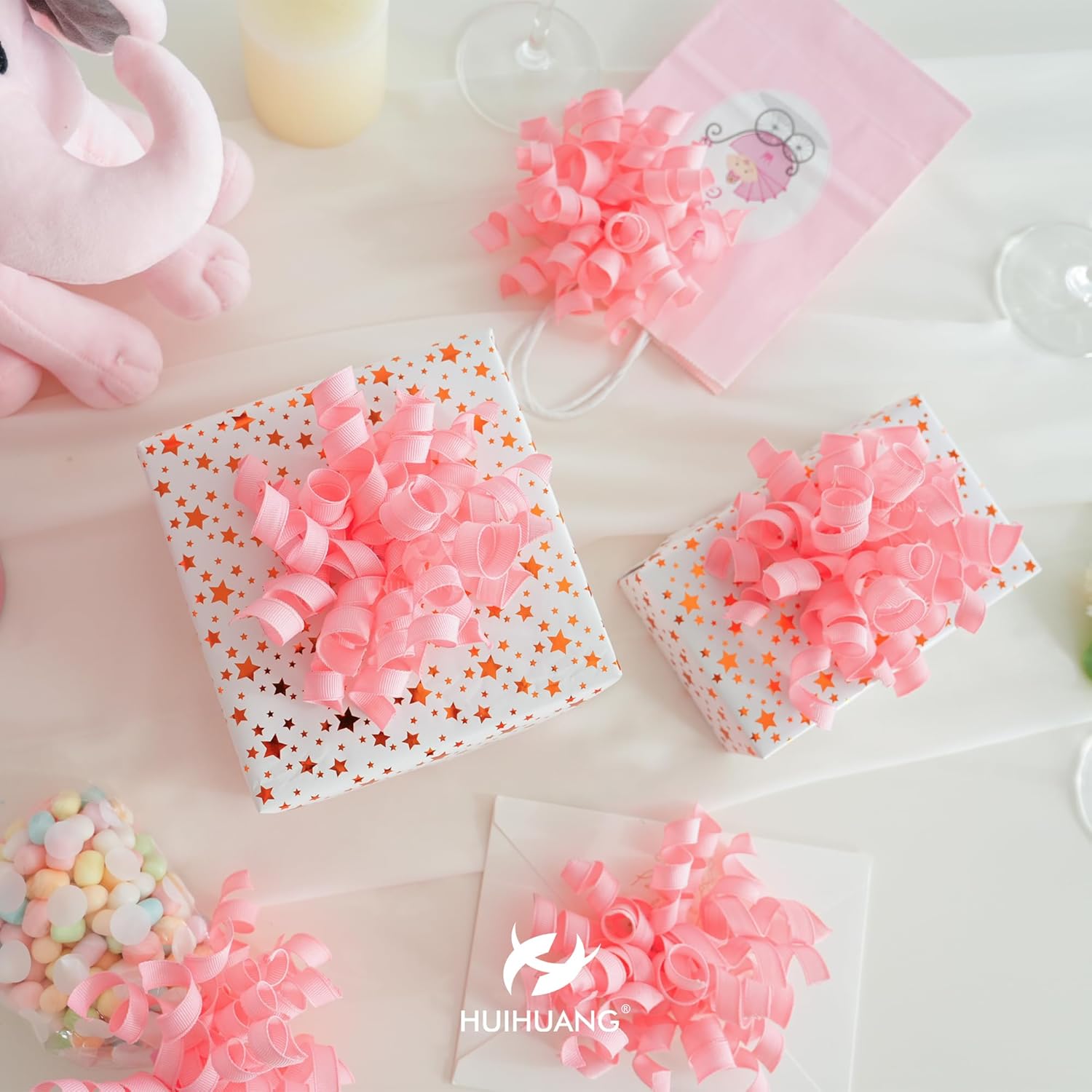 • SIZE & PACK: Each package contains 6 pcs pink curly bows are made of 12 strands of 3/8"(9mm) wide grosgrain ribbon that measure about 4.5~5" x 4.5~5"