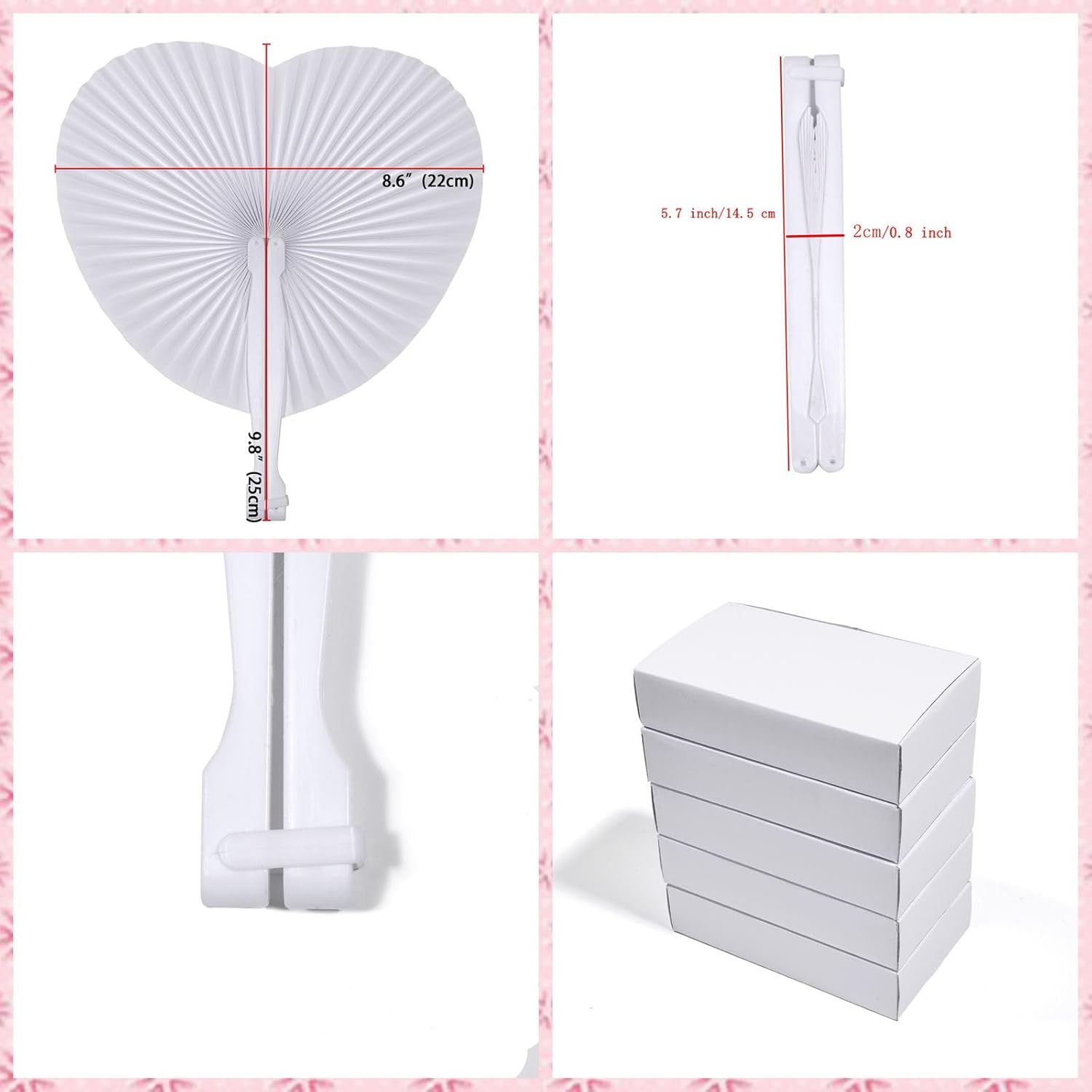• THE PAPER FANS PACKAGE:Our paper foldable fans package will includes 12 pieces counts of heart accordion shaped folding white paper fans.In total 12 PCS.Package weight 0.45 lb.