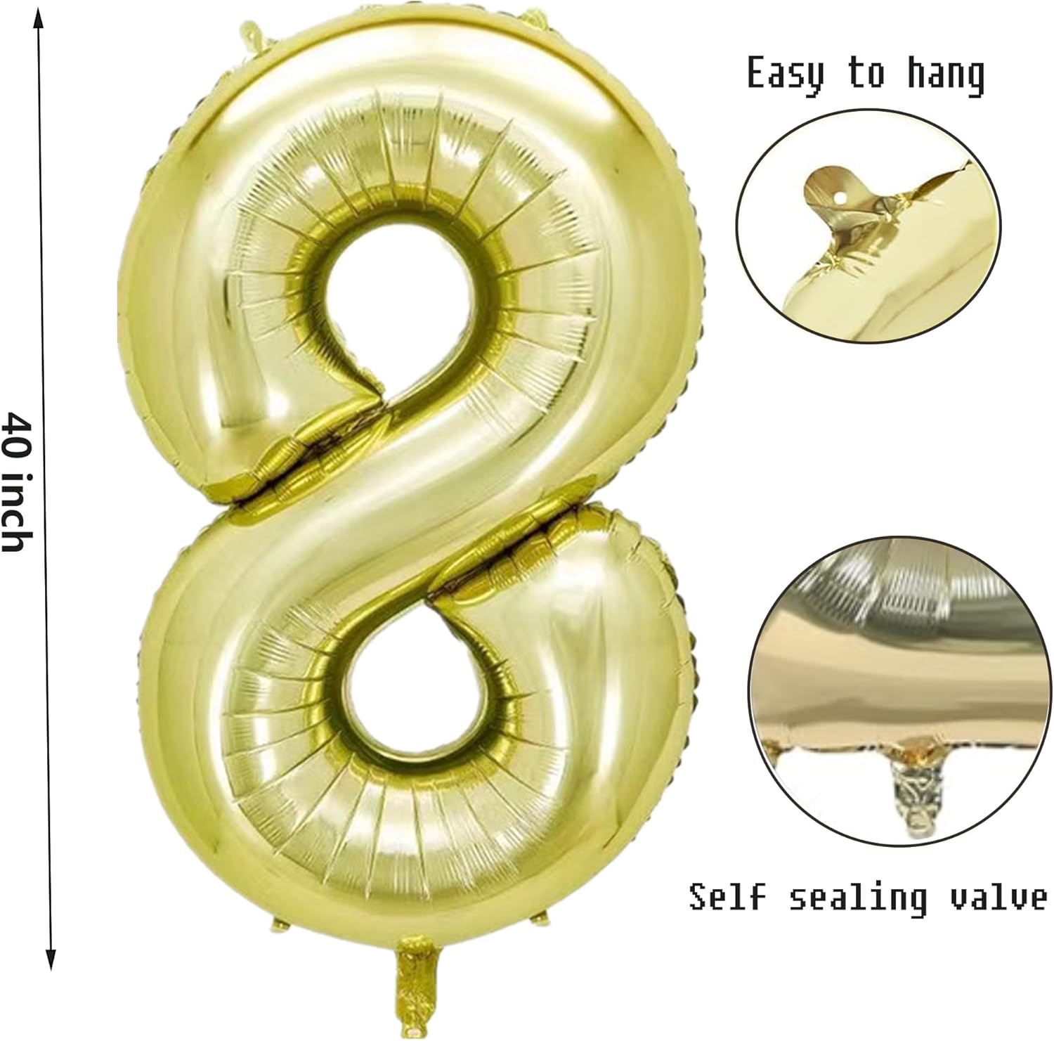 40 Inch Numbers 8 Light Gold Large Balloon Digital 8 for Birthday Party, 0-9 Birthday Party Decorations,Foil Mylar Big Number 8 Wedding Graduations Photo Shoot Decorations(Number 8)