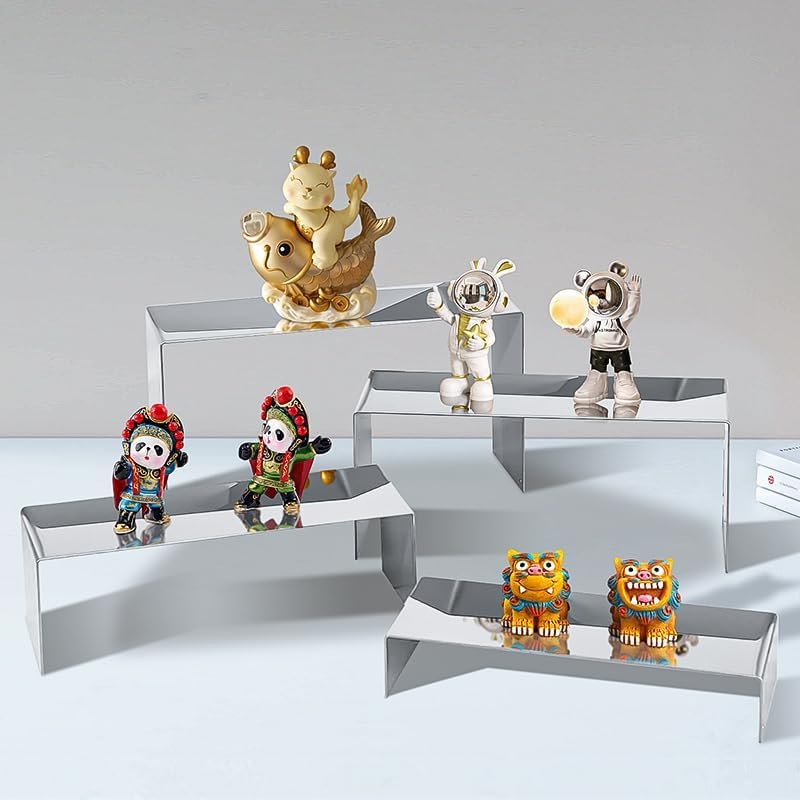 • POLISHED METALLICAL TOUCH: Our display riser is made of stainless steel. The surface is smooth and burr-free, and the mirror effect can make the displayed items look more advanced and textured.