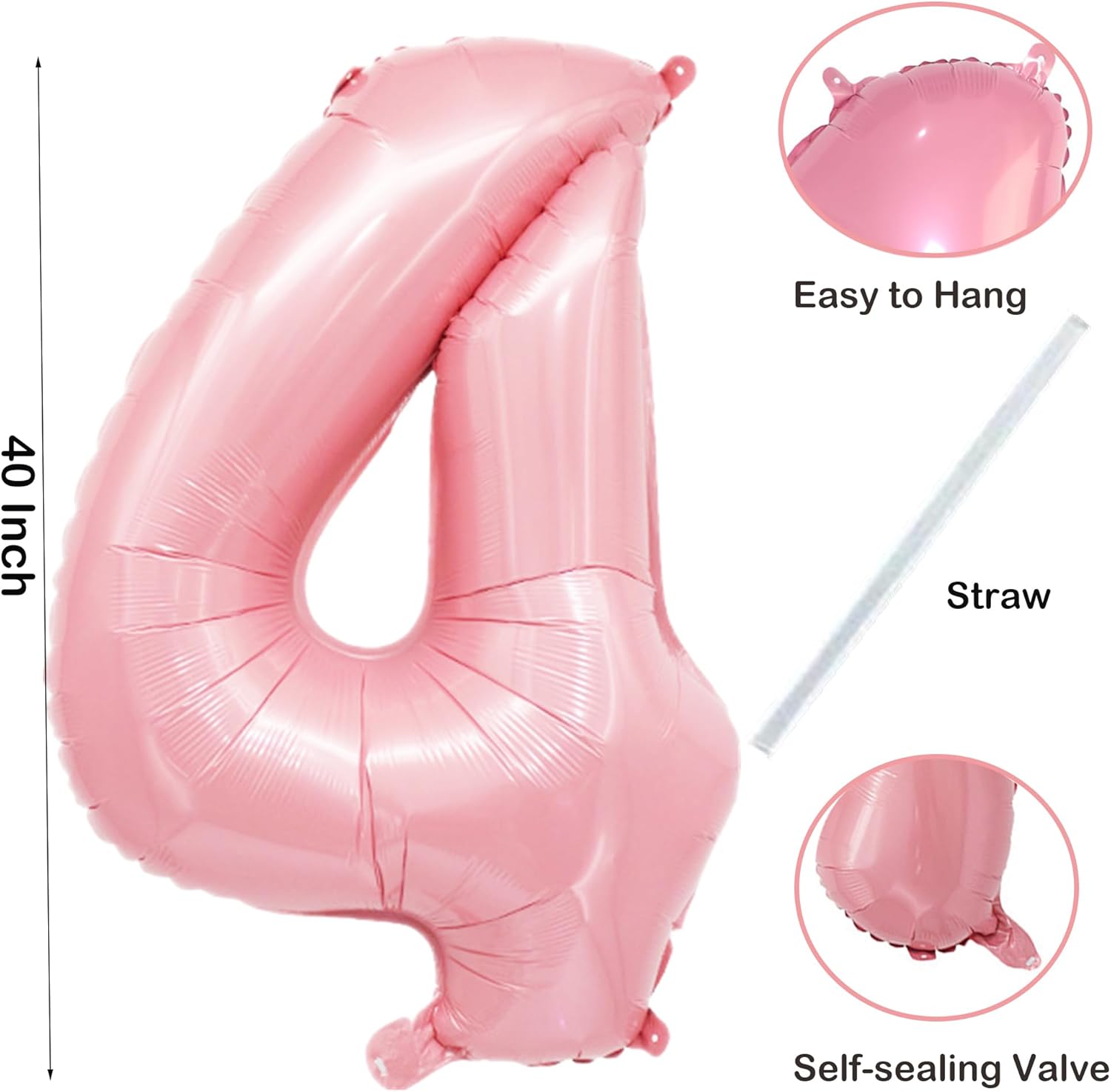 • 【Exquisite Appearance】- This giant pink number 4 balloon can perfectly decorate your 4th 14th 24th 34th 40th 44th birthday party or other anniversary events, and is also a great photo prop
