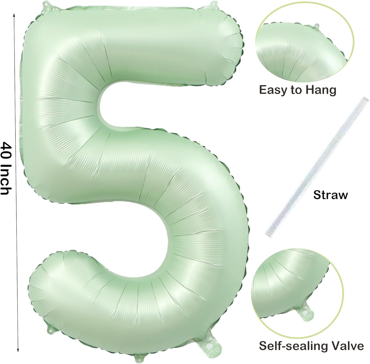 40 inch Olive Green 5 Number Balloons 40 Inch Big Foil Helium Number Balloons 0-9 Jumbo Pastel Pink Digital 5 Happy 5th Mylar Birthday for Girl Anniversary Graduation Princess Party Decoration