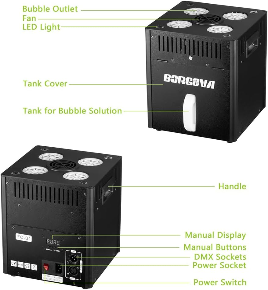 Stage Bubble Machine with Lights, DMX Control, Wireless Remote - Perfect for Weddings, Commercial Performances, Kids’ Parties, and Carnivals