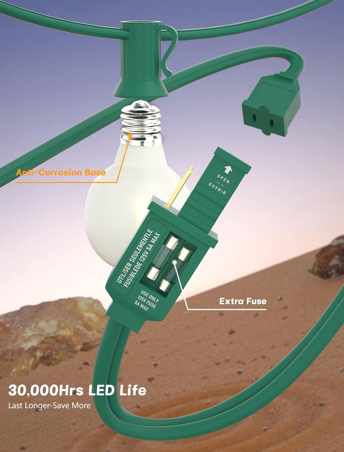 • End-to-end Connection: The G40 LED Christmas lights features an end-to-end connection design that can connect up to 28 strands to cover a large area. The Christmas lights outdoor can withstand extreme temperatures, rain, wind or wet weather. Unlike traditional ropes, they can be used indoors and outdoors for years