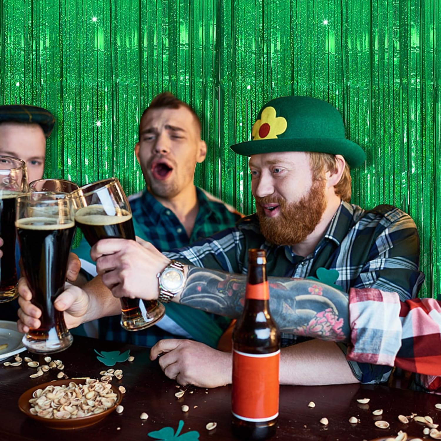 Tinsel Curtain Backdrop Green Birthday Party Decorations 5 Packs Glitter Foil Fringe Curtain Decor Streamers Photo Booth for Christmas Wedding Halloween Graduation