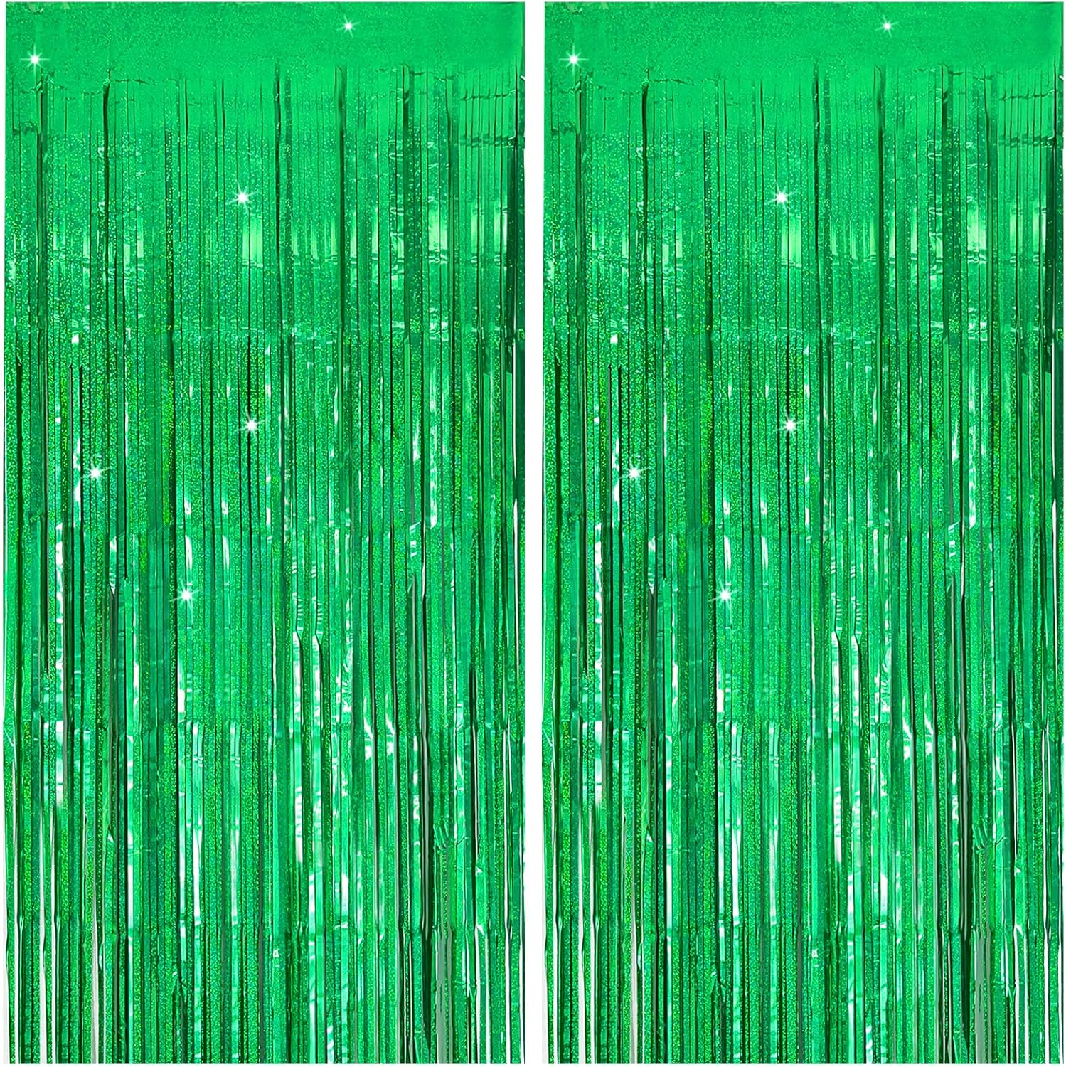 Tinsel Curtain Party Backdrop Green Birthday Decorations 2 Packs Glitter Foil Fringe Curtain Party Decor Streamers Photo Booth for Birthday Christmas Wedding Halloween Graduation Decorations