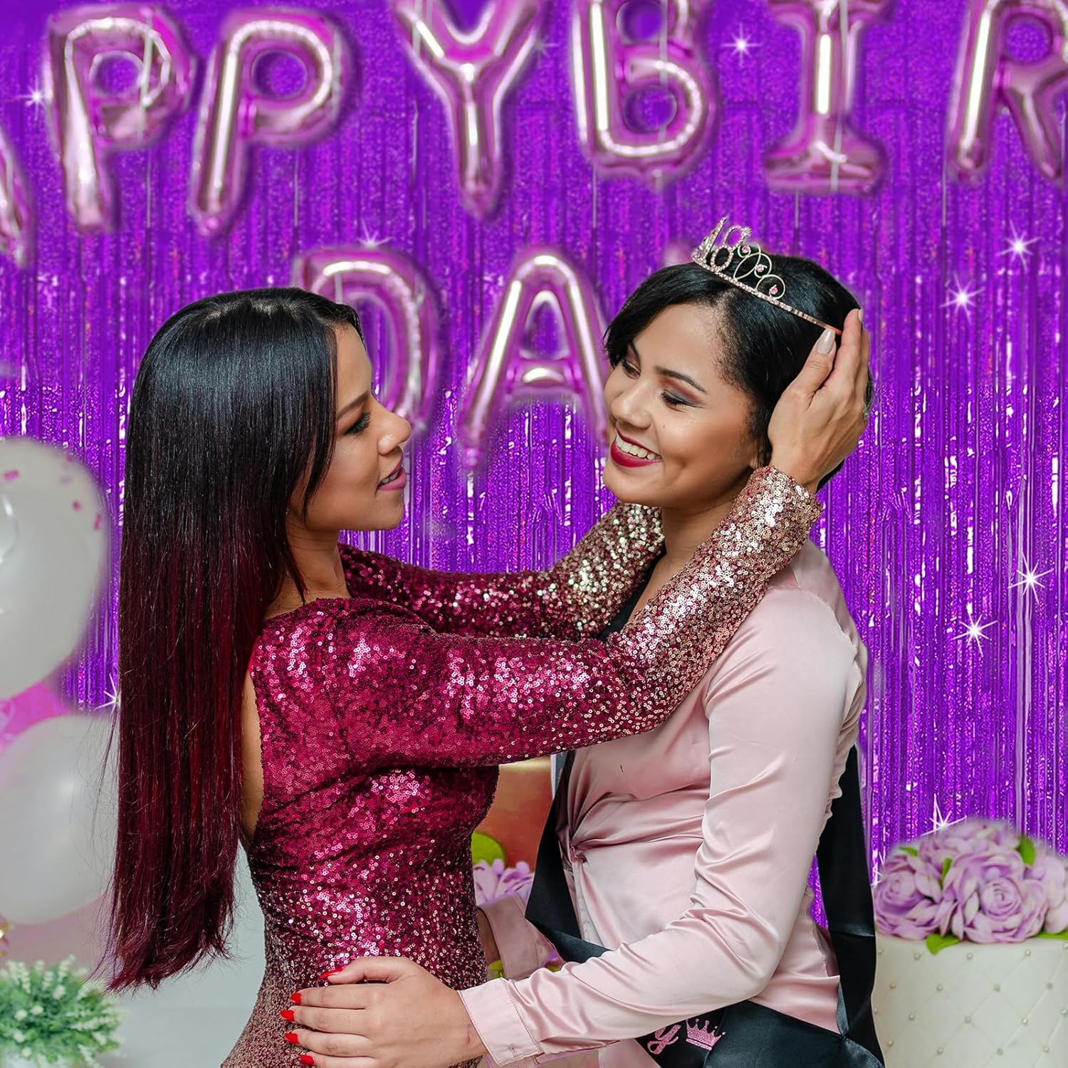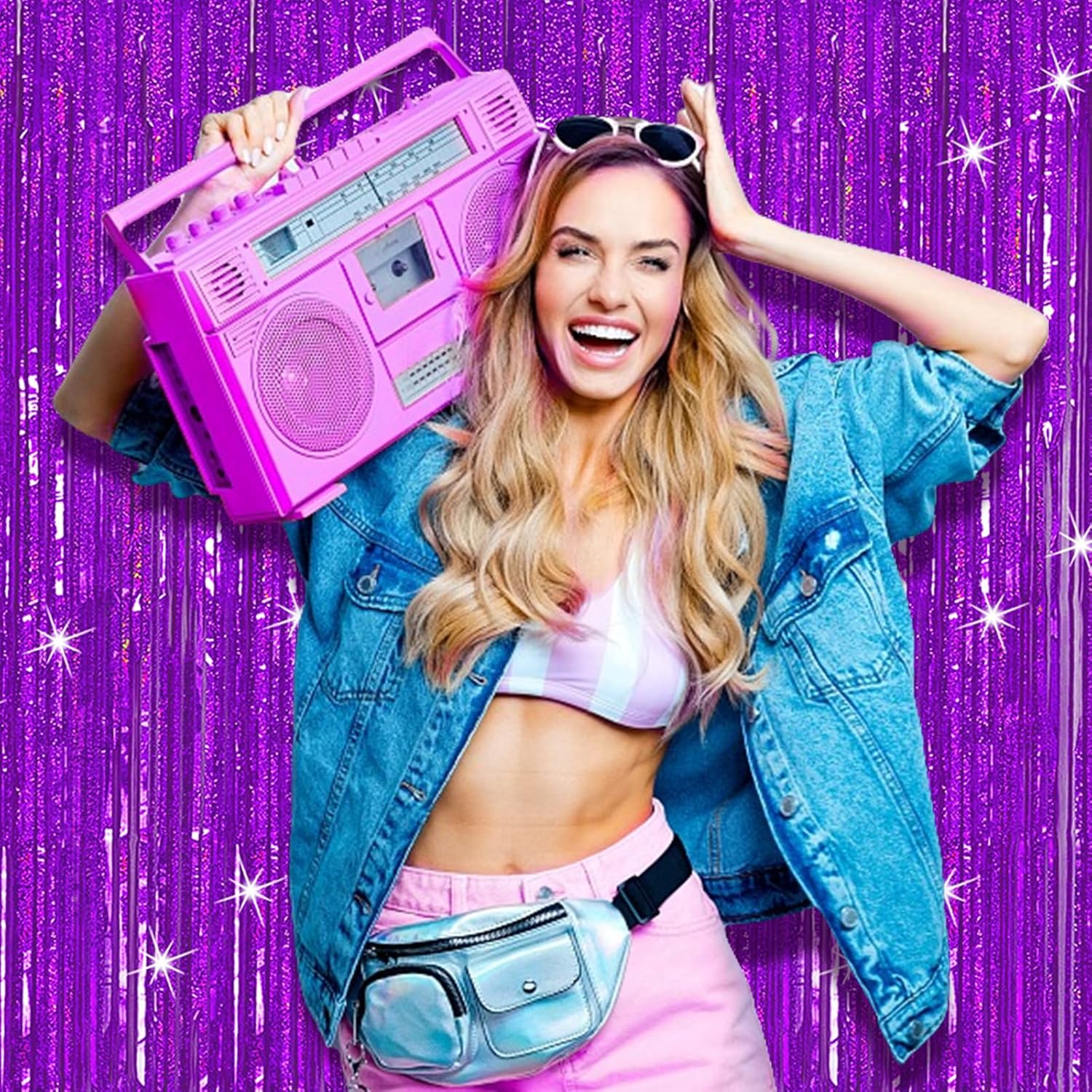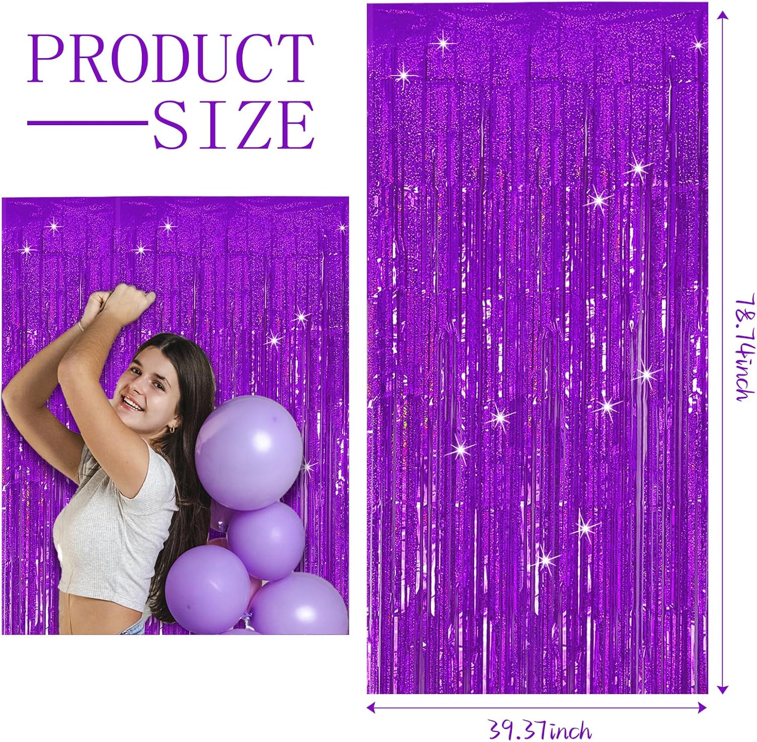 • Purple Party Decorations:3 packs of foil fringe curtains, the size of the foil curtain is 3.28 ft x 6.56 ft.It's long enough to fit any occasion. Please do not stick the foil curtain on uneven or stained walls to prevent it from falling off.