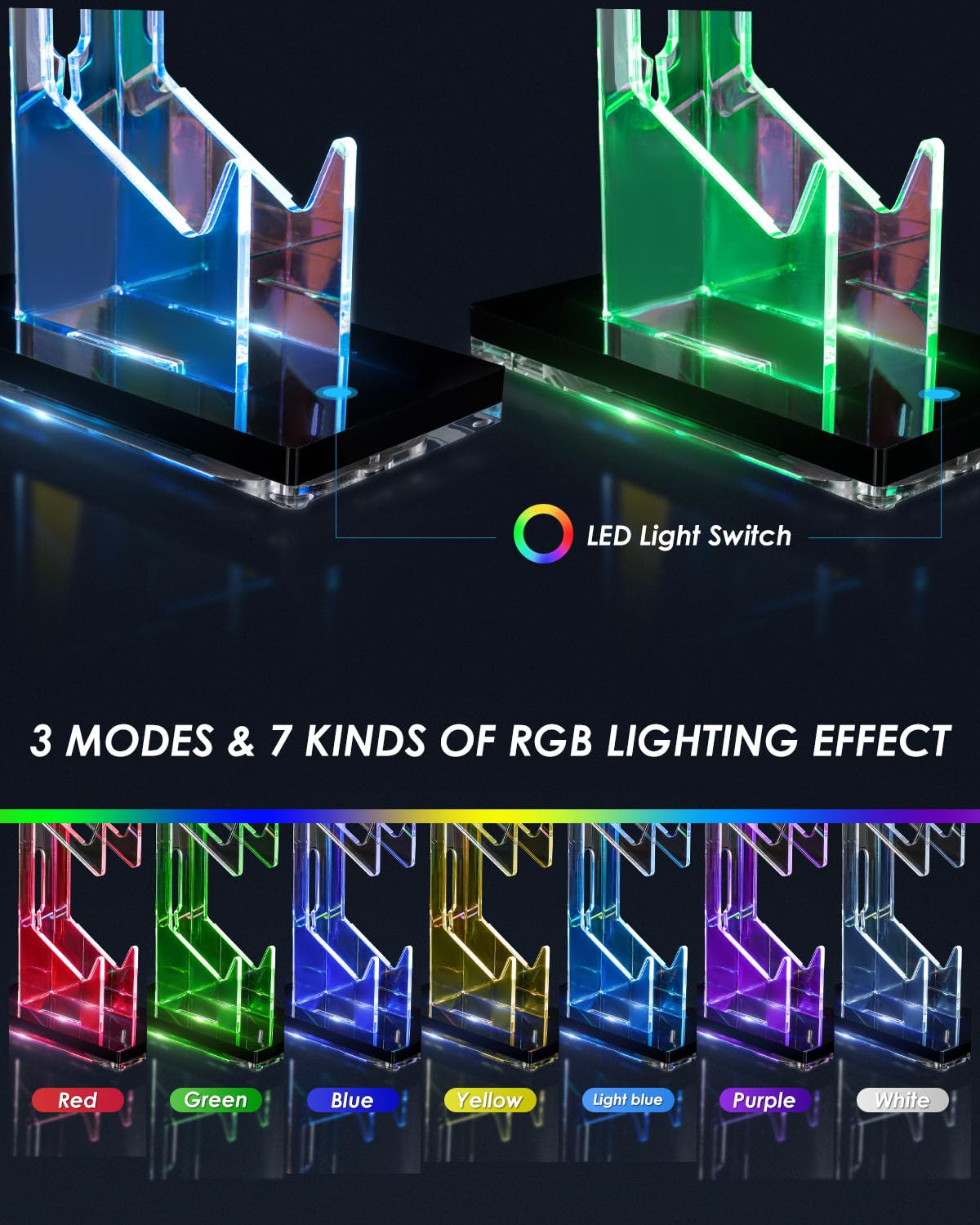 • Stunning Display Effect: Effortlessly adjust the OAPRIRE controller stand's lighting with 3 modes and 7 colors by simply touching the base. Power it safely and conveniently via USB from your PC, TV and other devices