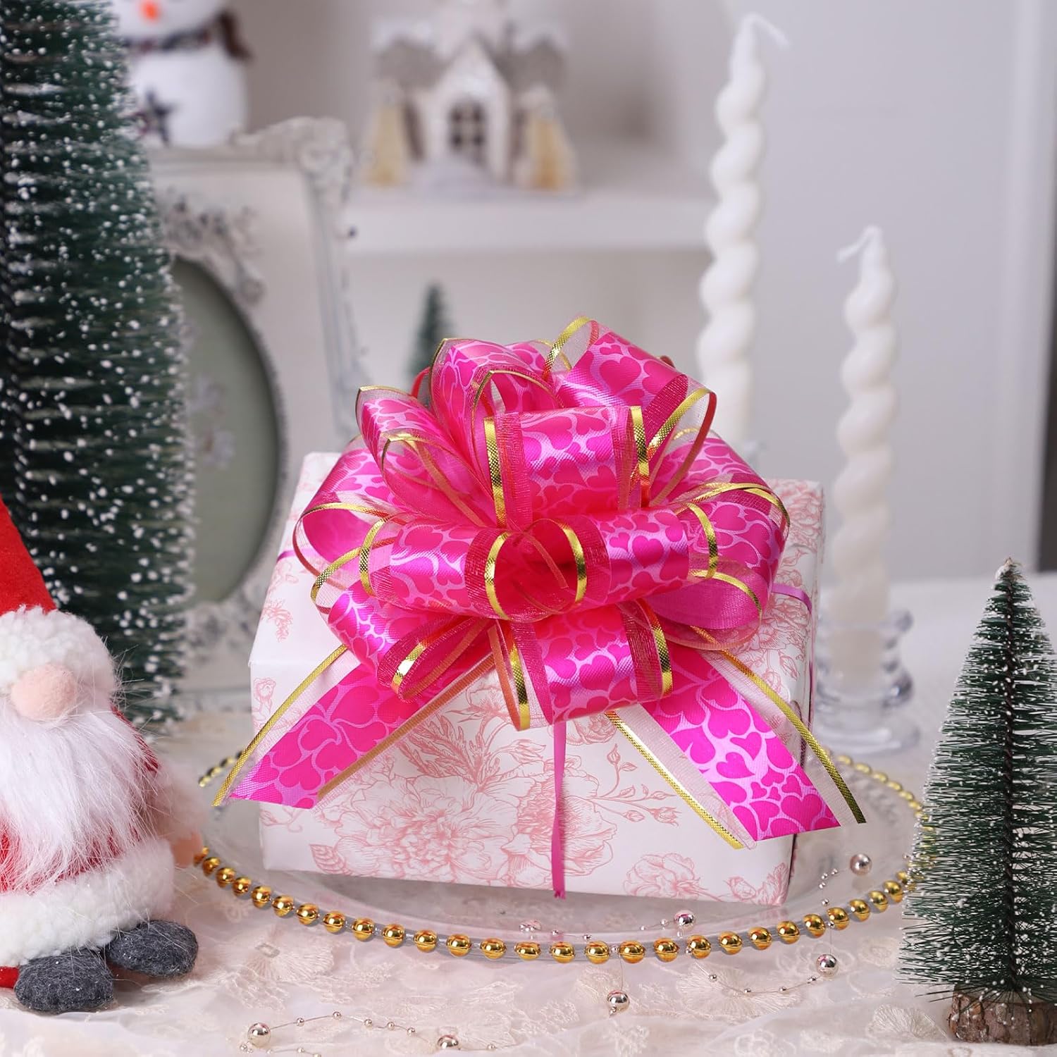 12Pcs Heart Gift Wrap Pull Bows, Large 6 Inch Assorted Gift Pull Bows, for Presents,Christmas Party Birthday Gift for Wrapping Boxes,Valentine's Day Gift Decorations