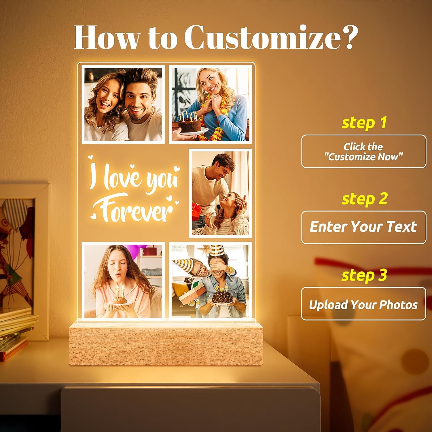 Custom Picture Frames with Photos, Customized Photo Frame with Night Light, Personalized Picture Frame, Personalized Anniversary Birthday Gifts for Women Men Him Her Girlfriend Boyfriend Couples