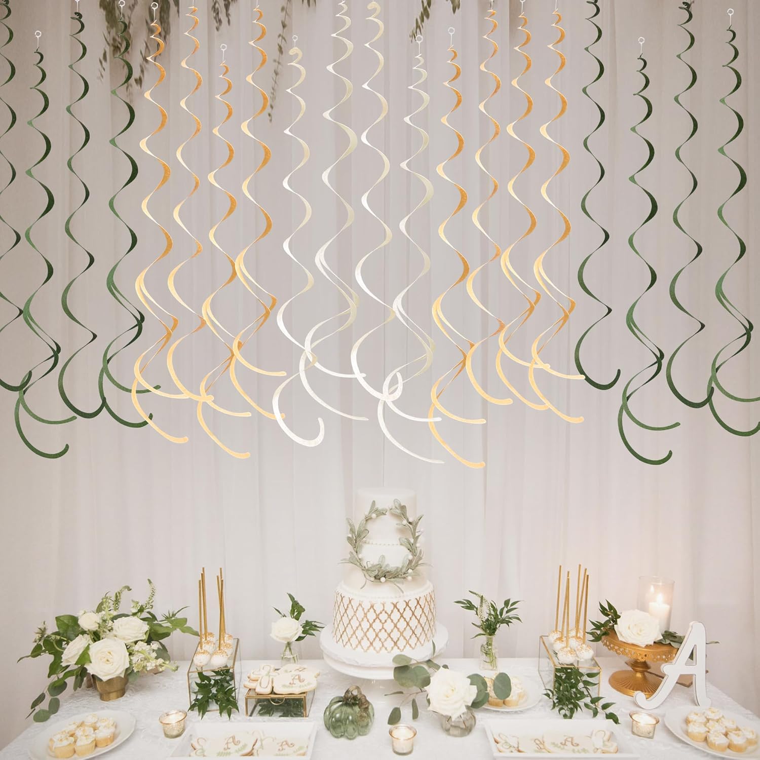 • Package Contains - 36 packs of sage green color swirl party streamer,Each swirl can extends to approximately about 2.62 feet long,Meeting daily general needs.Comes with 40 plastic hooks for hanging.