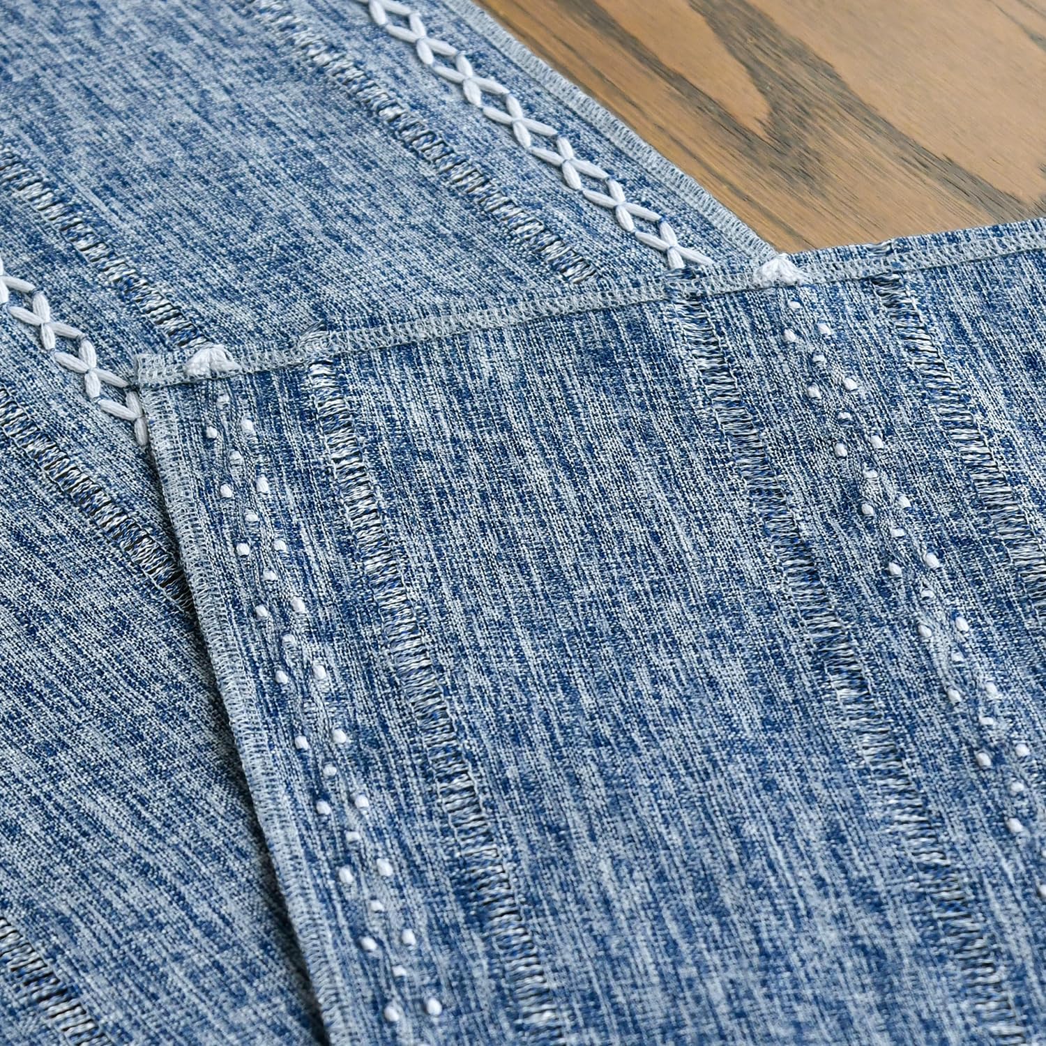 Artoid Mode Blue Rustic Cotton Linen Table Runner, Seasonal Embroidered Hollow Kitchen Dining Table Decoration for Home Party Decor 13x36 Inch