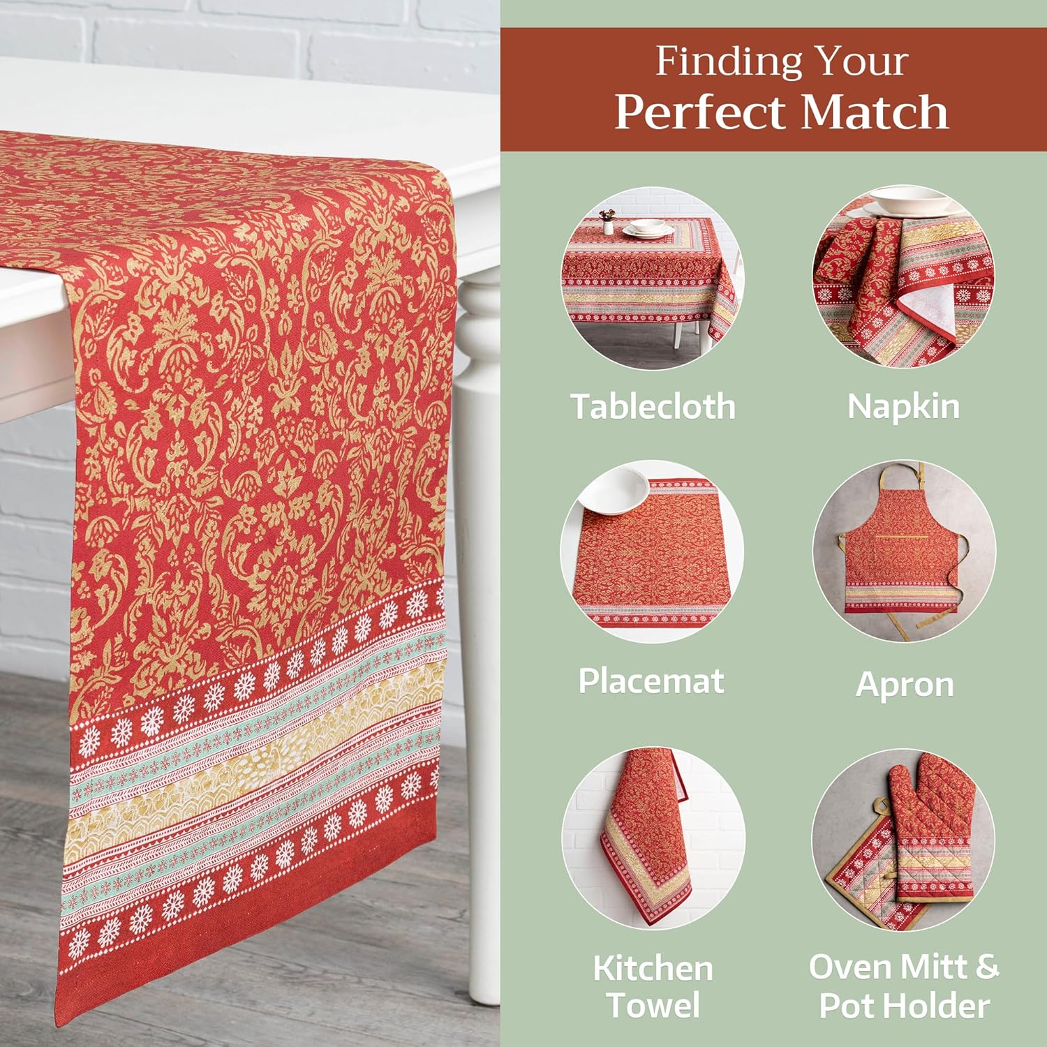 • Enhance your home: This elegant table runner adds a refined touch on its own or pairs beautifully with matching tablecloth, cloth napkins, and more . Perfect for kitchen, dining room, or seasonal gatherings.