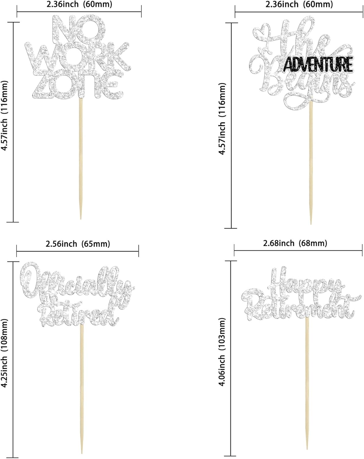 24Pcs Happy Retirement Cupcake Toppers Officially Retired Cake Toppers No Work Zone Adventure Begins Cupcake Picks Retirement Theme Farewell Birthday Party Decorations Supplies Silver